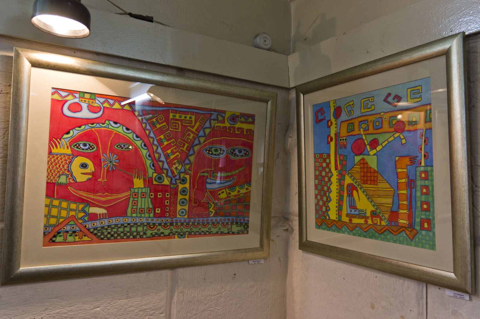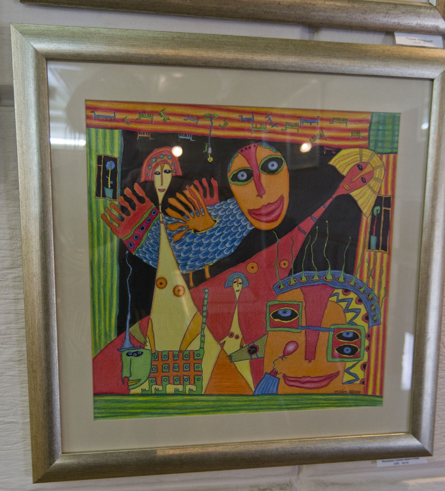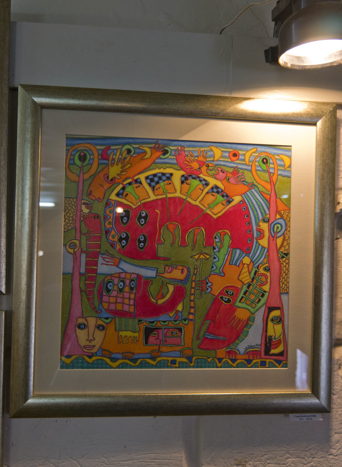 Фото №75140. Двое на красном, 2011, 40х60 /Остановка, 40х40, 2010, Вадим РяховскийКазань. Апрель 2011 Галерея \"Эбиволь\",выставка графики \"Зеленая собака\";Яркие сочные цвета, заполняющие все пространство картины, даются Вадиму с помощью цветных карандашей. Лист ватмана, цветные карандаши, фантазия и непременно хорошее настроение - это все что нужно В.Ряховскому для творчества.