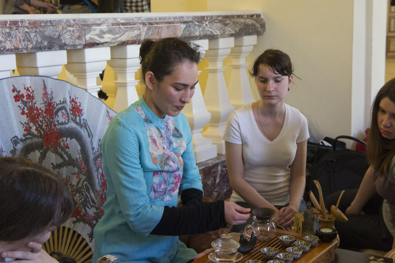 Фото №78009. Чайная церемония (китайская). Фестиваль чая в Национальном музее РТна Чайной улице в музее гостей ожидают разнообразные чайные церемонии; \"Ночь в музее\", 14 мая 2011, КазаньНа улицу, в музейный дворик, выйти не догадалась. Там расположили юрту, в которой можно было отведать чай Золотой Орды, прослушать рассказ о традиционном жилищ кочевых народов Востока. Из Национального музея отправляюсь в Выставочный зал Государственного музея изобразительных искусств. Здесь также многолюдно, как и на предыдущих музейных площадках. На первом этаже традиционно проходит Ярмарка мастеров и мастер-классы. О, ба! Знакомые все лица!