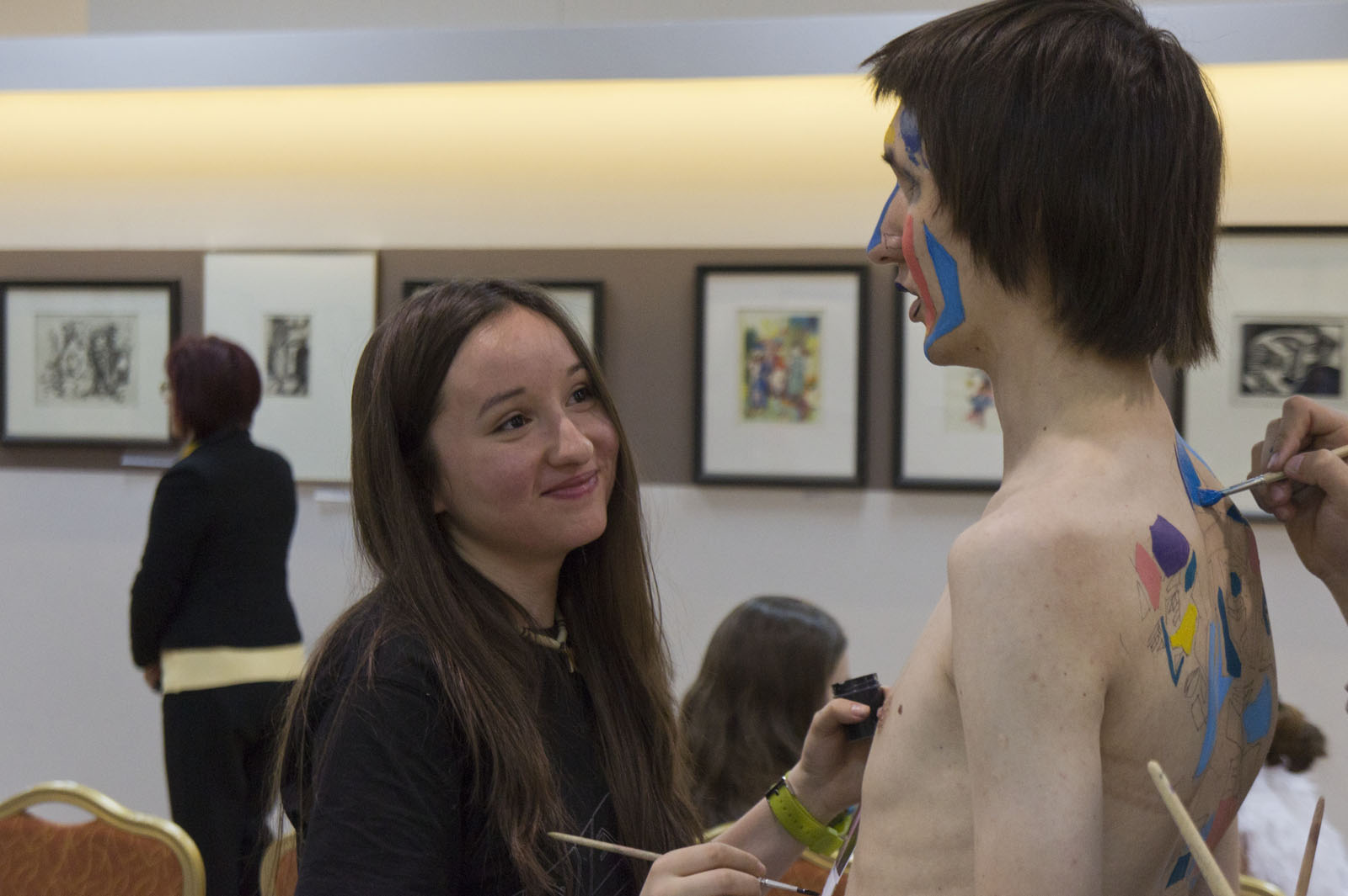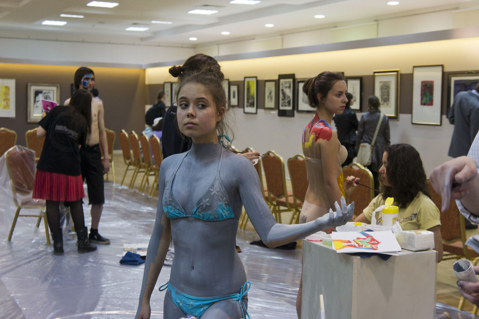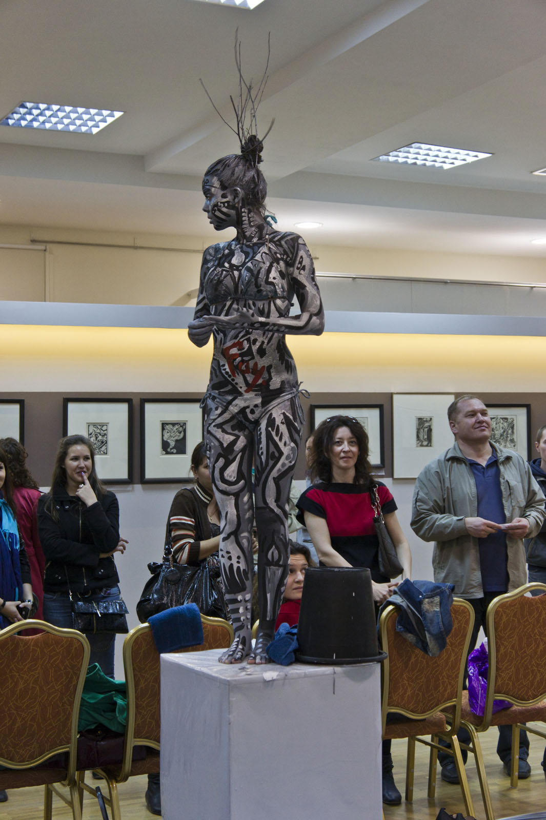 Фото №78114. В зале современного городского искусства, КазаньВыставочный зал ГМИИ РТ; \"Ночь в музее\", 14 мая 2011Но время "бежит неумолимо". Так хочется узнать, чем же закончится «BODY-ART BATTLE»