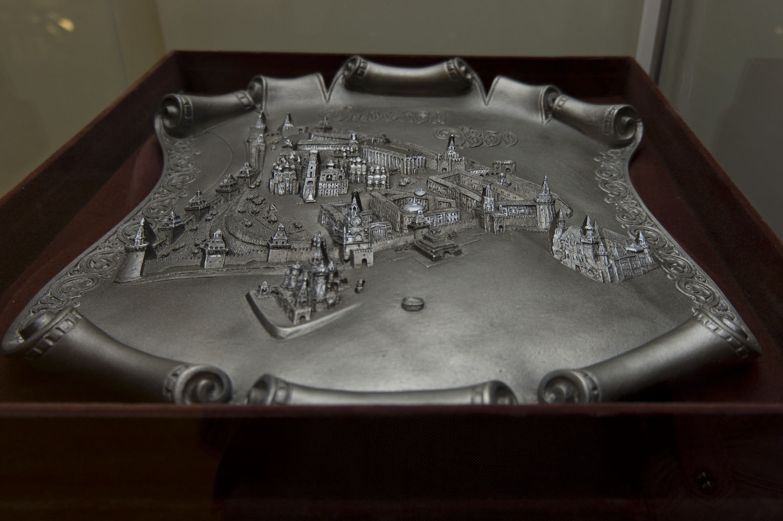 Фото №79838. Сувенир в виде картуша "Москва 850 лет"Выставка \"Москва и Москвичи\", Казань, июнь-сентябрь 2011Изюминкой выставки стали гравюры и живопись. Всего в экспозиции представлено более восьмидесяти экспонатов. О древнем возрасте Москвы напоминает, как не странно, сувенир, изготовленный к памятной дате - 850-летию Москвы.