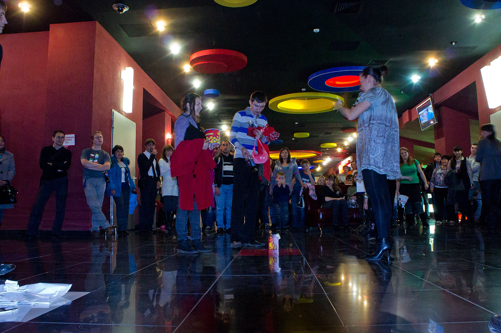 Фото №86766. Конкурсная программа, подготовленная сотрудниками Европы ПлюсПеред первым показом анимационного фильма в 3D кинотеатре РК “Ривьера” прошла интересная программа, подготовленная сотрудниками Европы Плюс: увлекательные конкурсы для детей и взрослых, познавательные вопросы викторины, а в результате хорошее настроение.