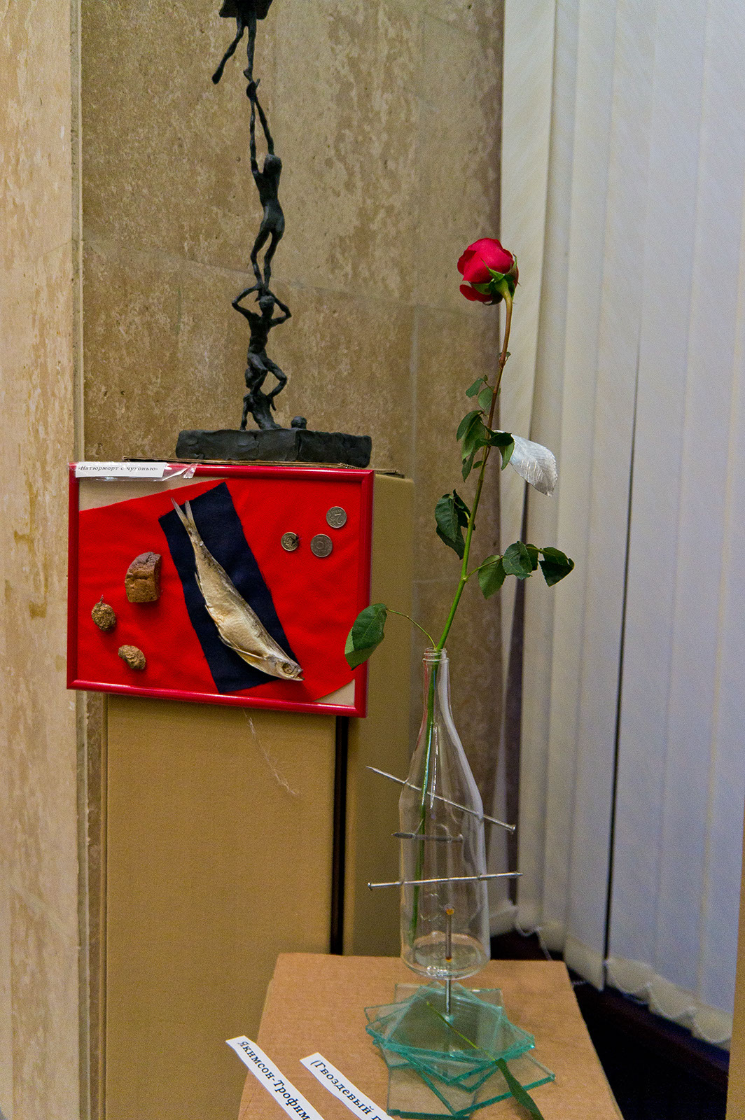 Фото №88198. Натюрморт с чухонью / Гвоздевый период / Модернизация. Е Якимов, С.ТрофимовЭто динамическое искусство, которое не зафиксировано во времени и пространстве. Каждую секунду что-то меняется , что будет через год, сказать невозможно. Каждый раз, когда мы будем на нее смтреть, ее состояние будет нести на себе печать изменений, печать времени. “Натюрморт с чухонью” Петров-Водкин “Натюрморт с селедкой”. Когда мы его делали, то поняли, что чего-то не хватает. Решили привнести нетленную ценность. - деньги. Здесь все фигня, и ценность представляют только деньги. Но оказывается, что и деньги не тленны. На них тоже зарождается какая-то жизнь, там непонятно, муха что ли?