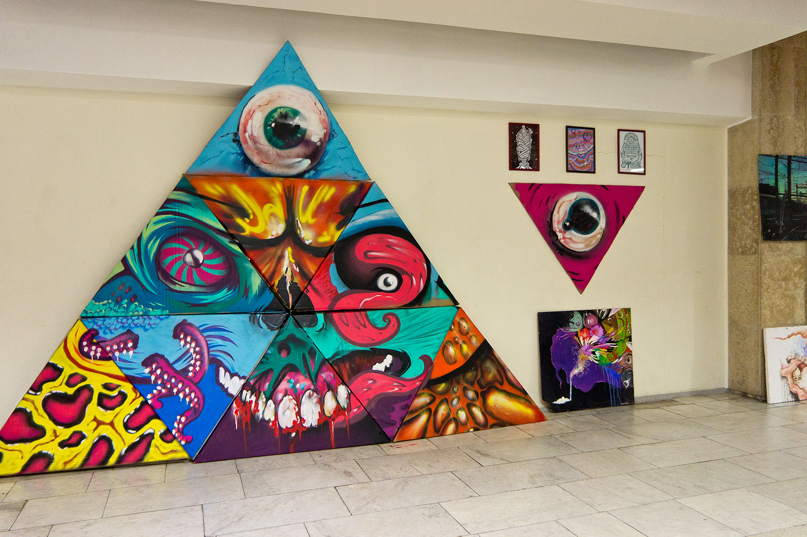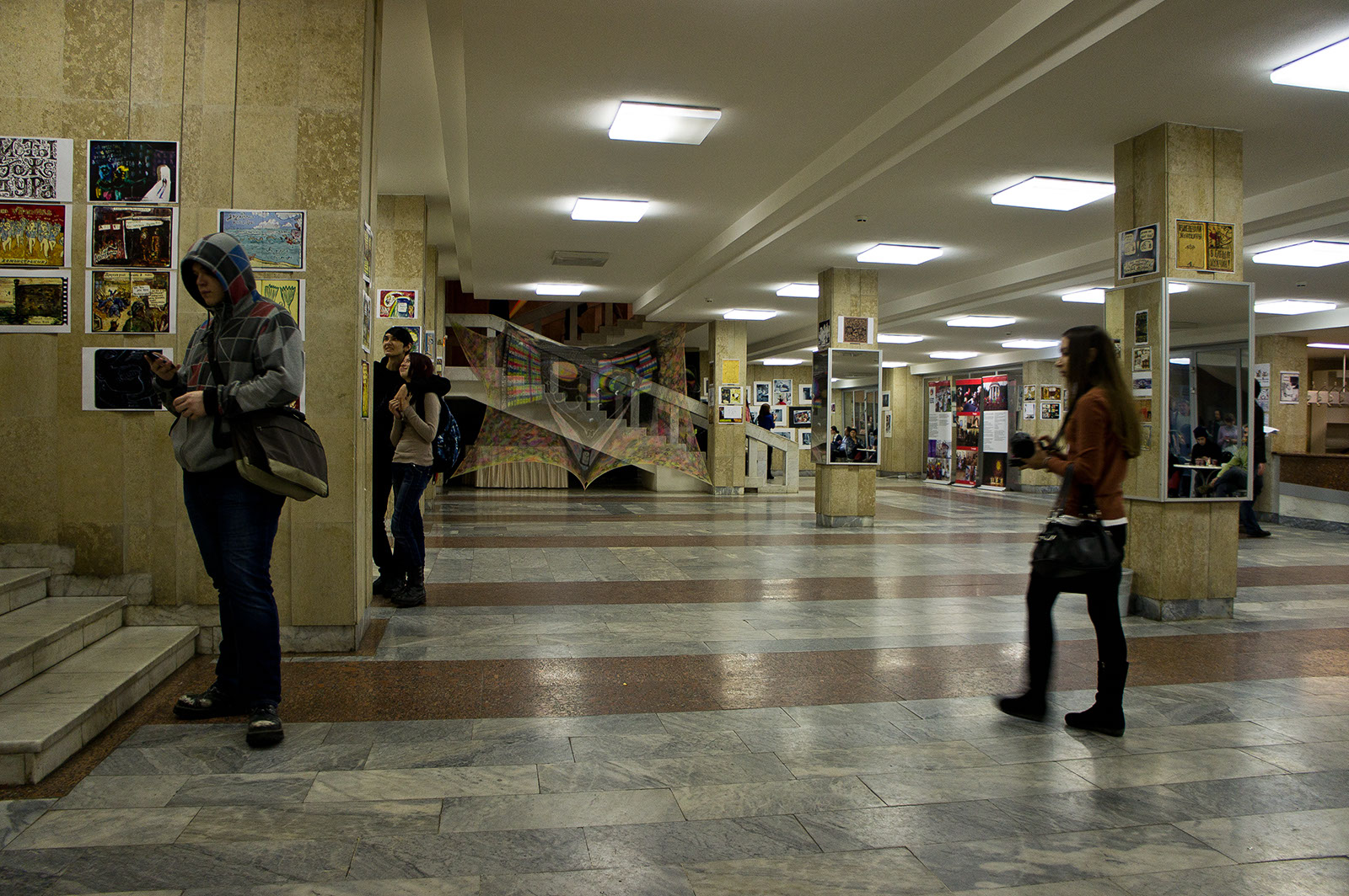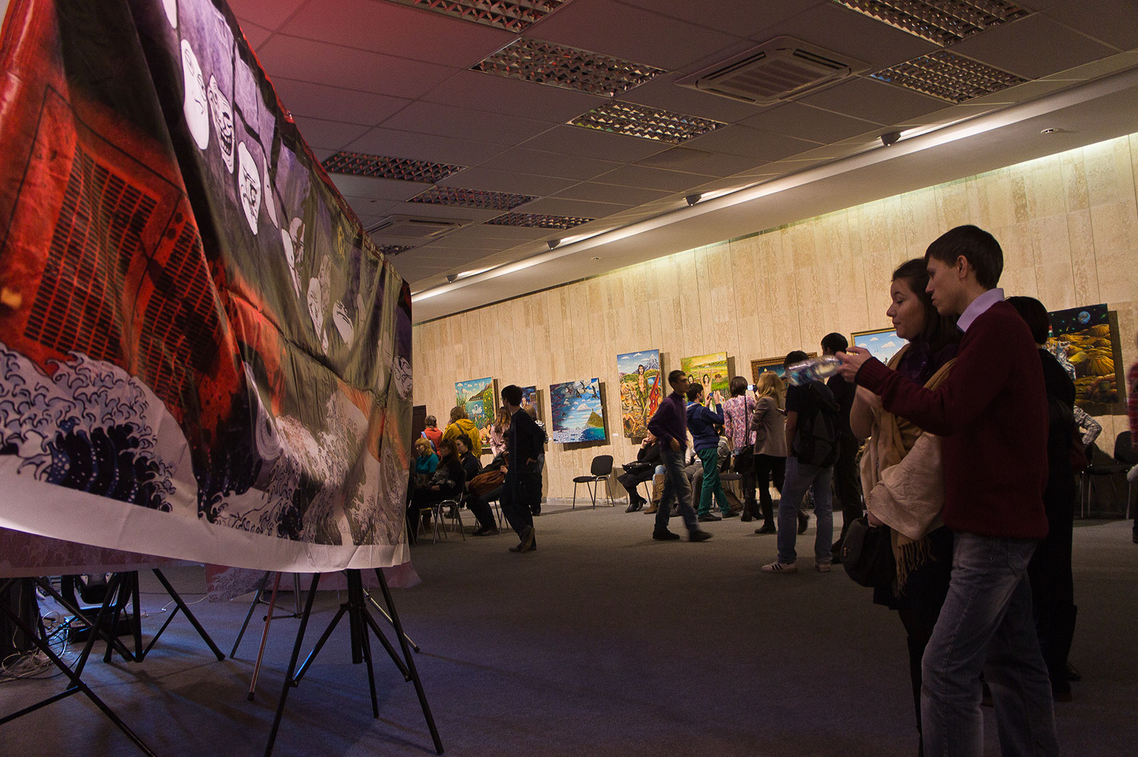 Фото №88630. Выступление музыкальных коллекивов на фестивале "ТРИПФЕСТ-2011"Тамбурное помещение перед входами в актовый и выставочный залы облюбовали художники-абстракционисты и не только.