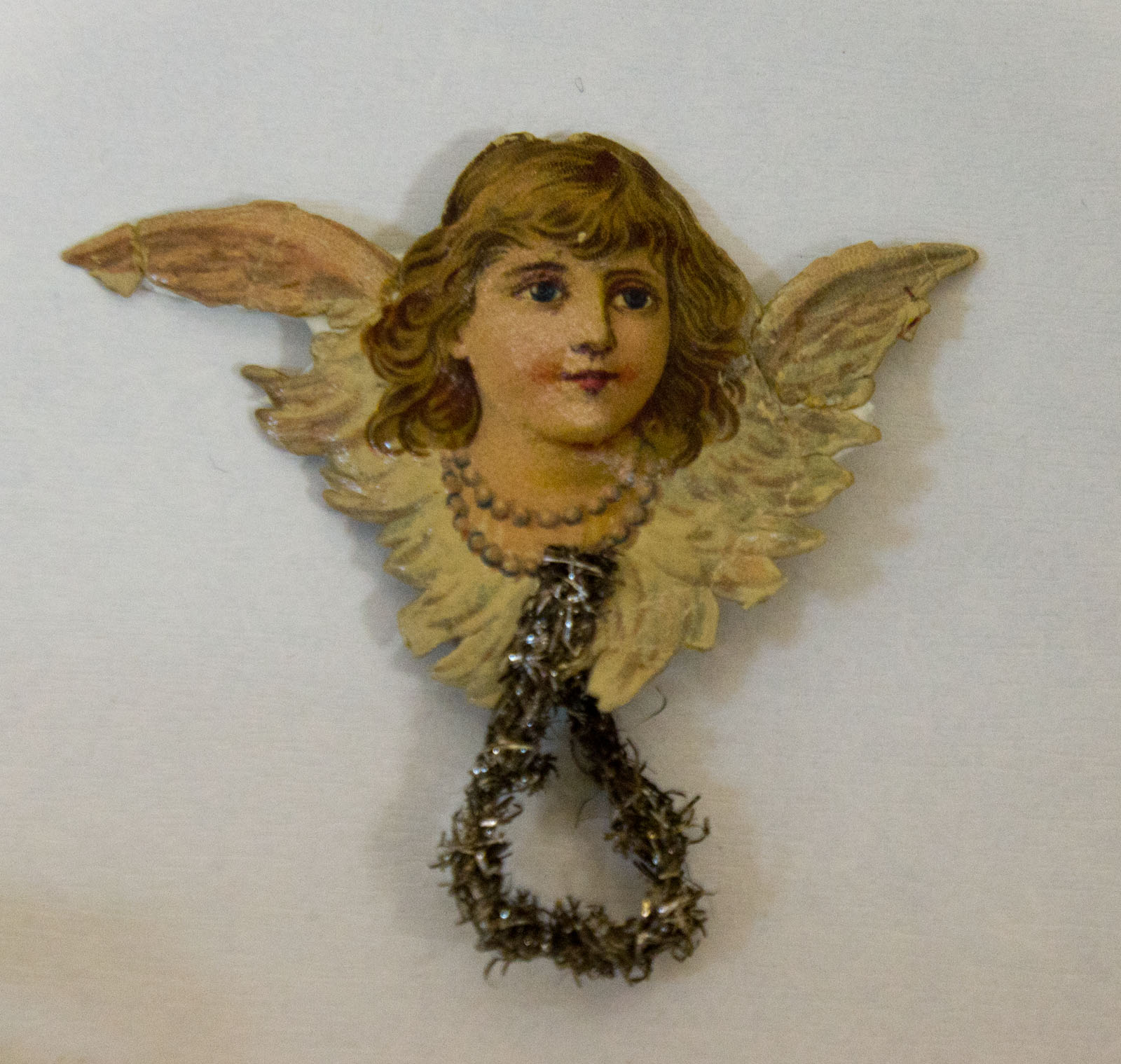 Фото №68540. Голова Ангела. Елочное украшение (дореволюционное время)Красивый новогодний праздник вскоре стал обычаем и распространился по всей Руси. Но далеко не во всех сельских поселениях знали о Новогодней елке, а отмечали Новый год 1 сентября. Зимних праздников на Руси было не мало. К народным праздникам царской России можно отнести Святки, к церковным - Рождество. Елка в царской России была рождественской. Посему её макушку всегда украшала Вифлеемская звезда, и непременным атрибутом считалась голова ангела, изготовленная в Германии из дрезденского картона.