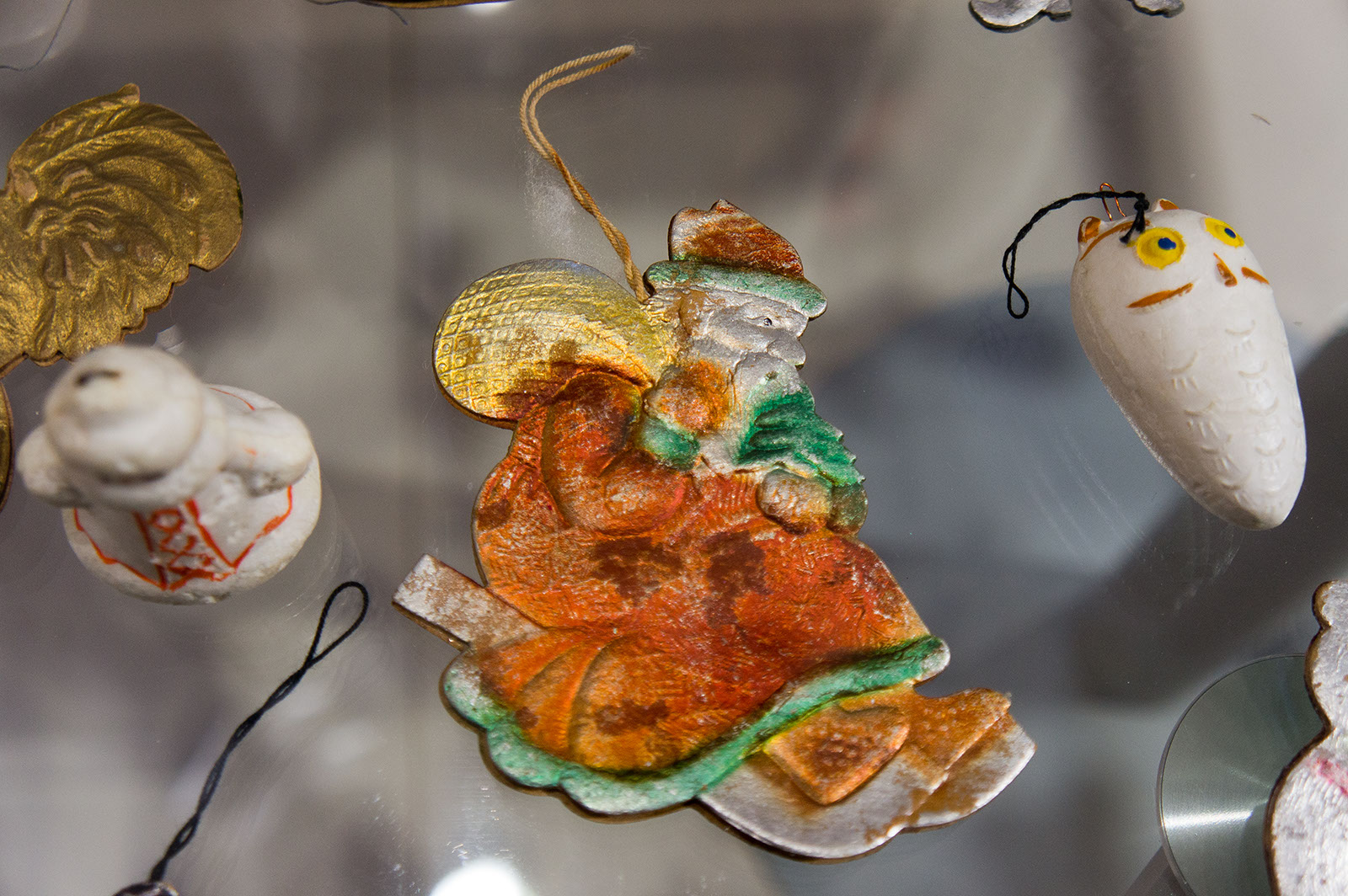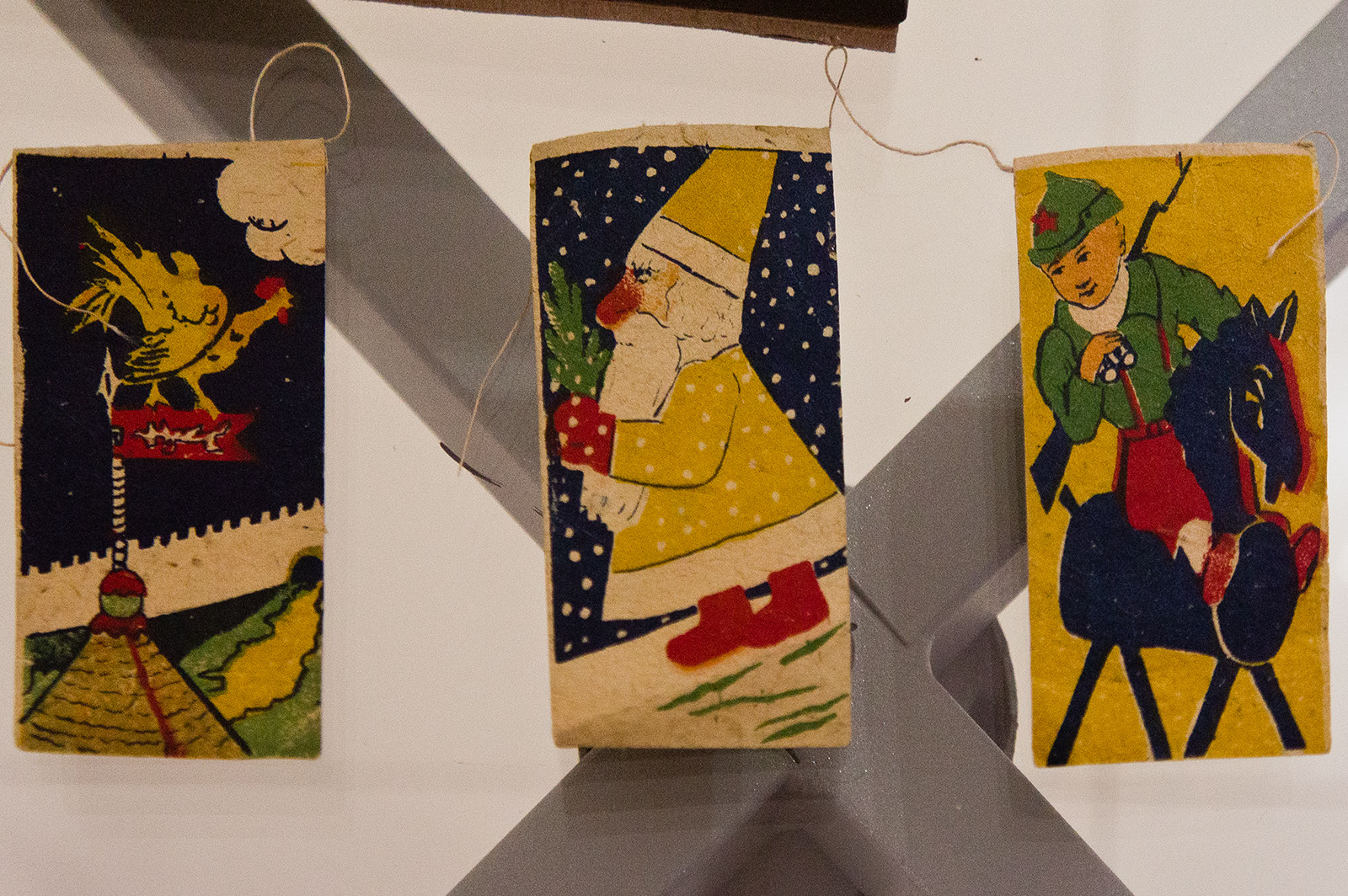 Фото №89000. В центре Дед Мороз (картон), СССР, 1940-1950«Советский Новый год» - о всеобъемлющее понятие, несущее шквал воспоминаний о событиях не так давно минувших дней. Побывав на выставке в Музее социалистического быта, каждый из нас, рожденных в СССР, вновь может почувствовать атмосферу новогоднего праздника тех лет, вспомнить: как ждал и готовился к встрече Нового года; свою ёлку; Деда Мороза и Снегурочку; подарки; игрушки и все то, что сопутствовало этому главному празднику года. А для молодого поколения посещение музея может оказаться уникальной возможностью ознакомиться с традициями встречи Нового года в СССР, наглядно представить, какой праздновали Новый год их мамы и папы, бабушки и дедушки. На выставке «Советский Новый год» через коллекцию новогодней игрушки, производимой в Советском Союзе, угадывается летопись нашей страны.
