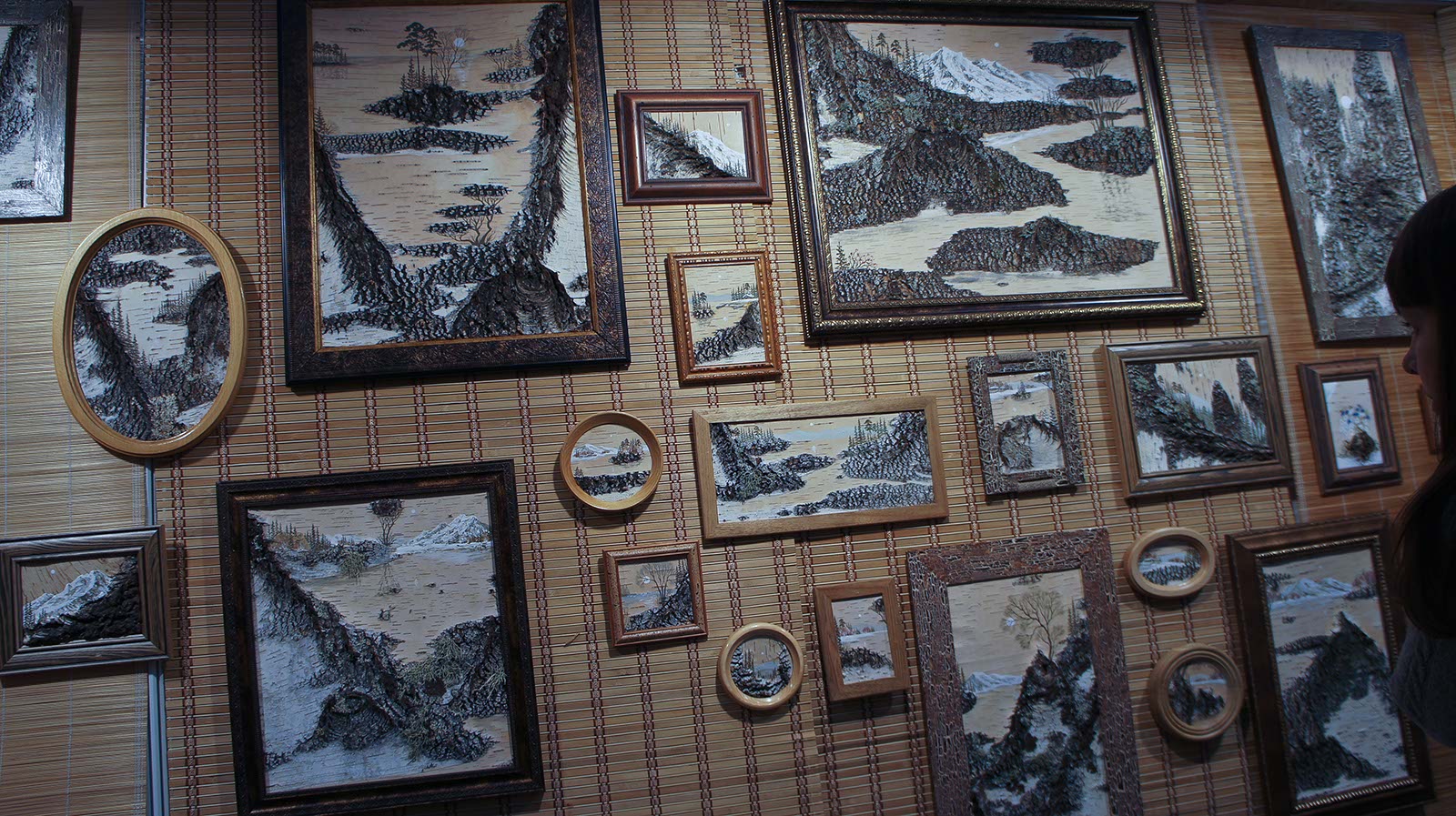 Фото №89938. Работы Л.Каркавиной (береста), г. НовокузнецкКартины Любови Каркавиной природные. Умеет она, гуляя по лесу замечать и примечать интересные сюжеты. То лик старца, то горный пейзаж возникают в воображении Л.Каркавиной. Вот, например, "Шарик из Простаквашино" собственной персоной. Бабочку Любовь дорисовала, да и то, потому что в этом месте уже был нарост. С появлением бабочки картина ожила: пес настороженно поднял ушки, наблюдая за полетом крылатой красавицы.
