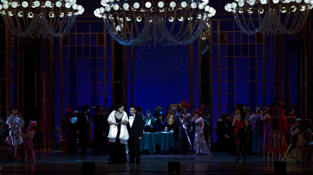 Фото №92836. Действие первое. Вечерний прием в гостиной дома Виолетты Валери.Джузеппе Верди в период создания этих опер находился в творческом поиске: опера “Риголетто”написана по сюжету пьесы Виктора Гюго “Король забавляется”, некогда запрещенной цензурой, считавшей, что сюжет подрывает авторитет королевского двора. Формулировка была такова: «оскорбительная для нравственности»; Сюжет “Трубадура” все та же цензура могла посчитать крамольным; А название оперы “Травиата” в переводе с итальянского языка означает "падшая", "заблудшая". Публика, воспитанная на операх, в которых преобладали исторические, библейские, мифологические сюжеты, могла не принять, то, что им готовил Верди.