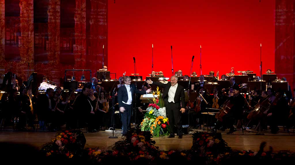 Фото №93550. Ренат Салаватов, Марко Боэми — два дирижера на сцене ТАГТОиБ им. М. ДжалиляXXX Международный оперный фестиваль им. Ф.И.Шалячпина, Гала-концерт, 17.02.2012 2-е отд.Программа концерта хорошо срежиссирована. Михаил Панджавидзе создал зрелищное и запоминающиеся представление. Увертюра к опере "Руслан и Людмила", М. Глинки, затем феерическое шоу в конце первого отделения и хор "Славься" из оперы "Жизнь за царя", М.Глинки в финале, стали узловыми моментами заключительного концерта.