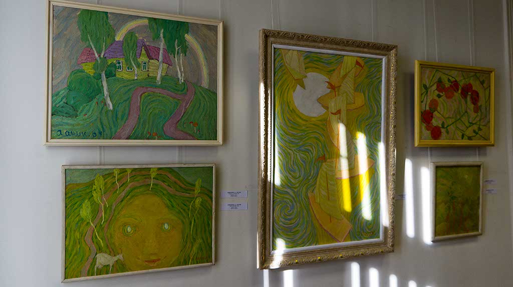 Фото №93945. Фрагмент экспозиции выставки Аникеенка А.А. 1925-1984Персональная выставка Алексея Авдеевича Аникеенка, \"Хазинэ\", 17.02.2012- Очень многие художник вдруг увидели за окном солнечный свет. Это прекрасно - продолжила мысль Татьяна Васильевна Голубцова. Она принесла из дома картину Н.Беляева, который подражая Аникеенку, создал пейзаж: в Казани скучали по ярким солнечным работам художника после его отъезда. Своими воспоминаниями делились Абрек Амирович Абзгильдин, Андрей Аскарович Визель, Эдвард Миронович Хакимов, Роберт Мугаллимович Миннуллин и др.