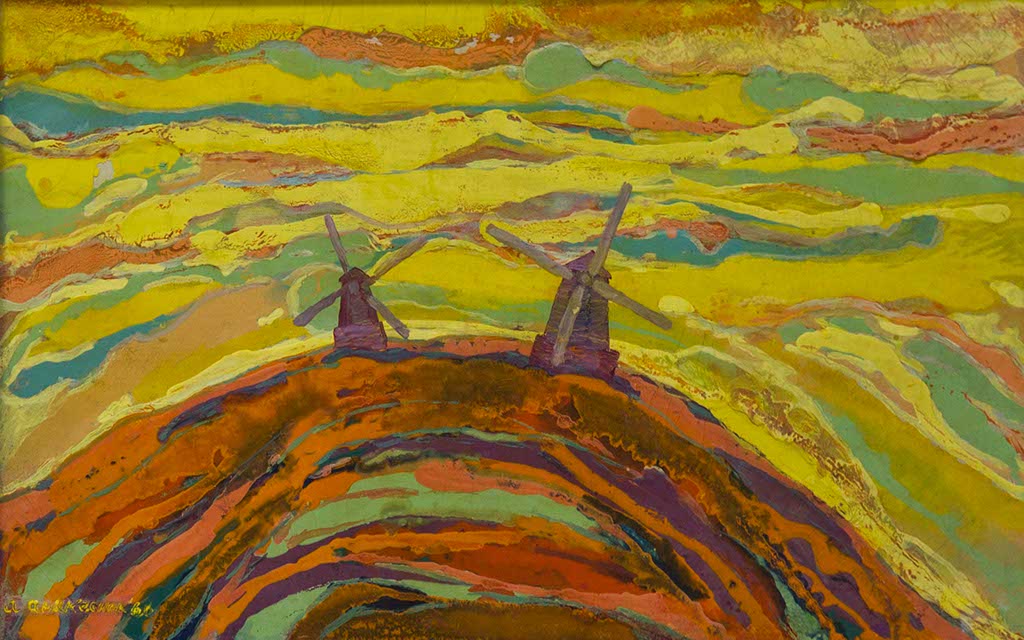 Фото №93953. Пейзаж с мелницами. 1966. Аникеенок А.А. 1925-1984холст, масло;