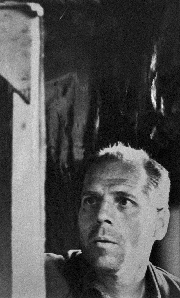 Фото №93973. Алексей Аникеенок. Момент творчества. 1967. Фотография Фролова Ю.И.Одиночество. Гулкое, как морозная белая степь, где в ночном бездорожье в отчаянье ходишь кругами, и толчёным стеклом визжит пронзительно снег под смертельно промёрзшими сапогами. Одиночество. Дом. Коммуналка,клетушка, музей... Дом, в который порой возвращаться — и думать не хочется. Одиночество. Даже среди друзей. И с любимой женщиной — одиночество. Но когда по грунтовке отчаянно-рыжий мазок полоснёт за предел, за черту — начинается творчество! Не жалейте меня, не смешите: — Ах, одинок! Позавидуйте счастью моего одиночества! “Поэма солнца”, XV. Николай Беляев. 1964-1965