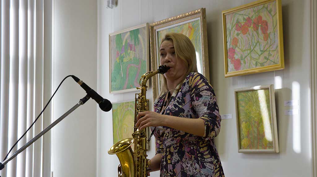 Фото №93985. Мария БеговатоваВстреча друзей Аникеенка и Беляева началась с музыкального вступления. Мария Беговатова для гостей сыграла на саксофоне - любимом инструменте Аникеенка, который мастерски владел игрой на этом инструменте. Алексей Аникеенок выступал с джазменами Олега Лундстрема в Казани. Уезжая в Москву оркестранты звали художника с собой, но тот, по совету преподавателя художественного училища, Виктора Степановича Подгурского, выбрал живопись. Музыка осталась лишь увлечением.