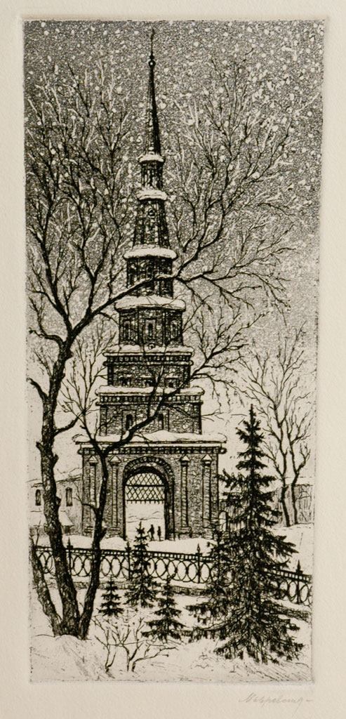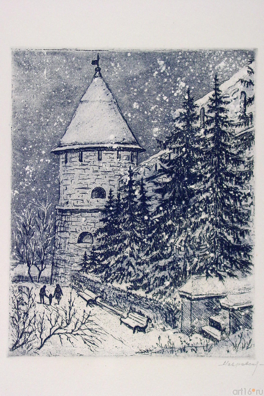 Фото №94507. Юго-западная башня. 1976-1978. Мавровская МагдалинаИз серии \"Башни казанского Кремля\"; бумага, офорт, акватинта; фото: Вербиной Ольги ГеоргиевныЛитература: Изобразительное искусство Советского Татарстана. Казань. 1957. С. 43, 48. С.М.Червонная. Художники Советской Татарии (Биографический очерк). Казань. 1975. С. 110-111. С.М.Червонная. Художники Советской Татарии. Живопись, скульптура, графика. М. 1978 С. 58, 198. Государственный музей Татарской АССР. Путеводитель. Казань.1980. С. 153. История искусства народов СССР, том 9.(Автор раздела «Искуство Татарской АССР» С.М.Червонная). М.1982. С. 182. С.М.Червонная. Художники Советской Татарии (Мастера изобразительного искусства СХ ТАССР). Казань. 1984. С. 196-199. М. Е. Ильина. Шесть десятилетий вдохновенного труда. «Казань», 1998, №4, с. 128. Магдалина Мавровская. Графика. Каталог выставки 1-21 марта 2001 года (Автор вступительной статьи О.Г.Вербина. Составители: О.Г.Вербина, О.Л.Улемнова). Издательство ГМИИ РТ. 2001. О.Г.Вербина. Поэзия достоверности. – «Казань», 2001, №3, с. 24-32. М. Мавровская Шahaри Болгар. – «Азат хатын», 1969, №10, с. 6-7. В.Н.Разумейченко. Одухотворяя факт - «Вечерняя Казань», 1984, 22 марта.
