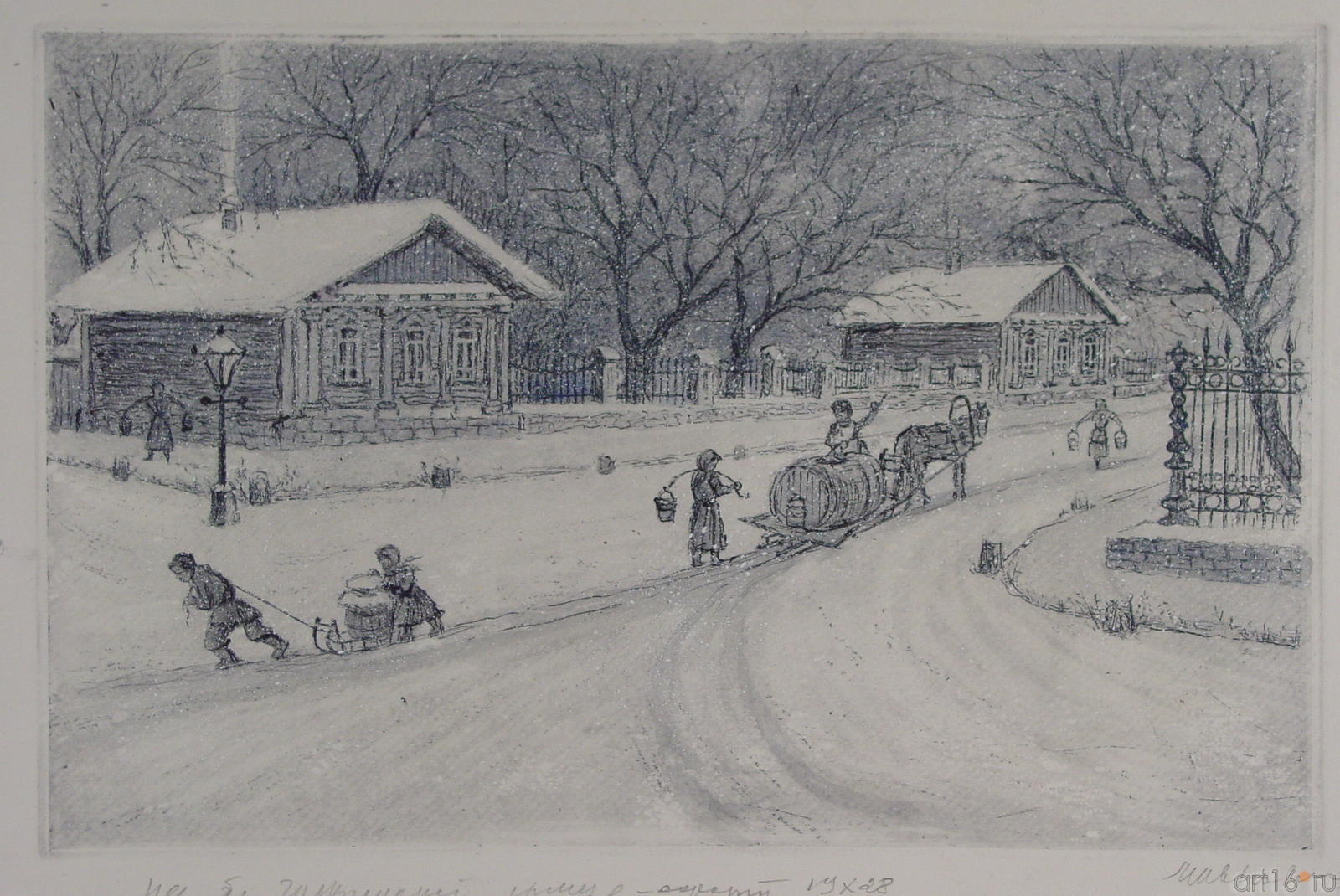 Фото №94748. Осенний этюд.Музей ИЗО. Мавровская МагдалинаВ основе ранних работ М.К.Мавровской, посвященных Горькому, Тукаю, Пушкину, лежат историко - литературные мотивы. В графических сериях ее рисунков 1940 – 1950-х годов выразилась общая для того времени серийность, сближавшая станковые циклы с книжной иллюстрацией ( «Поэт Тукай в детстве» 1947 /карандаш/; «Пушкин в Казанском кремле» 1950 /цветной карандаш/; цикл иллюстраций к повести М.Горького «Мои университеты» 1946-1947 /карандаш, уголь/, «По Руси» («Молодой Горький») 1953 – 1956 /уголь/; «Образы татар в произведениях М.Горького» 1958-1959 /черная акварель/, которая в 1962 году была исполнена в технике офорта с акватинтой). Выделяется редкая в эти годы пейзажная серия рисунков «Абрамцево» 1953 /черная акварель/. Среди работ конца 1960-х годов, посвященных современникам, серия «Труженики волготанкера «Таймыр» 1969-1970 /офорт, акватинта/. В 1977 – 1979 годы усилиями Мавровской в Казани была создана офортная мастерская при ХФ ТАССР. В начале 1970-х годов ведущей техникой становится офорт, определивший особенности Мавровской как художника - графика. Это нашло выражение в интимной камерности ее пейзажей. В офорте Мавровская обрела себя, создала свои лучшие серии: «Деревня Кокушкино – место первой ссылки В.И.Ульянова – Ленина» 1967-1968; «Булгары» 1968-1969; «Горьковские места в Казани» 1976-1979 / два листа этой серии: «Первая булочная Деренкова» и «Старая пристань на Волге» выполнены были в 1976 сначала в технике литографии стоном/; «Башни Казанского Кремля» 1976-1978; «Казань в недалеком прошлом» («Старая Казань» - 1987) 1987- 1989. Здесь обозначилась главная тема творчества М.К.Мавровской – Казань в ее прошлом и настоящем. Импульсом к созданию ее первых офортов о Казани послужило известие о реконструкции старой части города вдоль берега Казанки, о том, что будут снесены пристань и деревянные постройки. С желанием сохранить настоящее и привнести в него дорогое художнику прошлое связана одна из важных особенностей творчества Мавровской: ее стремление к достоверности изображаемого, трогательное внимание к деталям. По своему художественному языку из последних офортных серий выделяется цикл «Казань в недалеком прошлом» 1987-1989, в которой Мавровская достигает тонкого соотношения реального и вымышленного, исторической документальности и поэтического воображения.