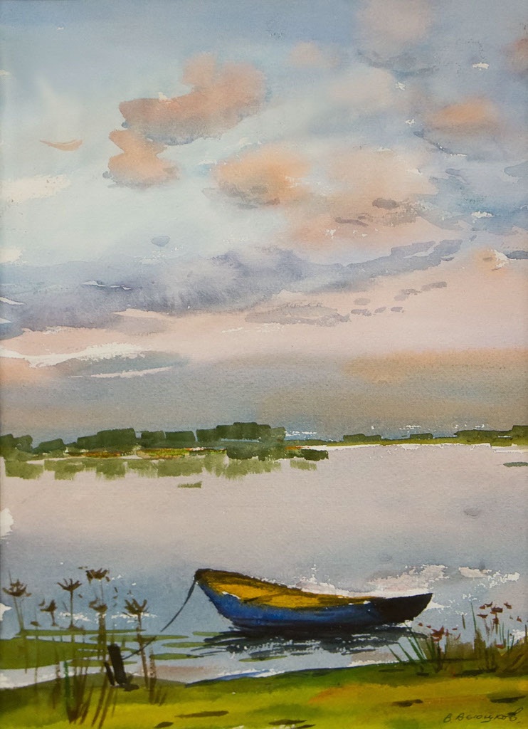 Фото №96958. Лодка у берега. 2010. Вьюшков В.В., пос Васильевобумага, акварельНеизменно, каждые выходные, с 10.00 до 17.00, художника можно встретить в Раифском монастыре. Там Виктор Васильевич устраивает выставки под открытым небом, демонстрируя прихожанам, туристам свое творчество.
