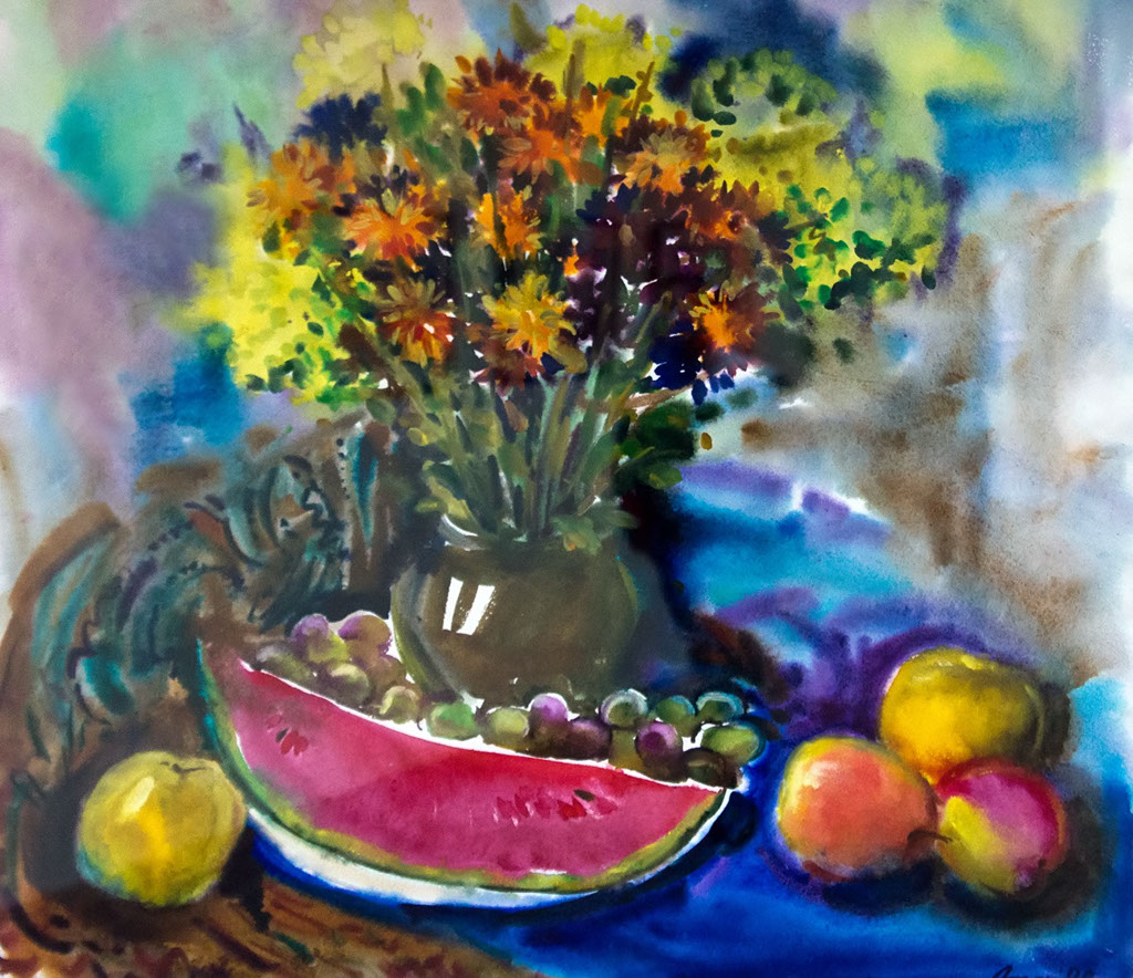 Фото №97034. Натюрморт с арбузом. 2009. Тимергалина А.А., 1960, Казаньбумага, акварельНе все участники выставки, чьи работы вошли в экспозицию выставки, пришли на открытие, а жаль. Следующая республиканская выставка акварели будет только через два года. Был прекрасный повод пообщаться с коллегами по цеху, со зрителями. Для художника, чья профессия предполагает затворничество, работу в мастерской без зрителя, такое общение просто необходимо.