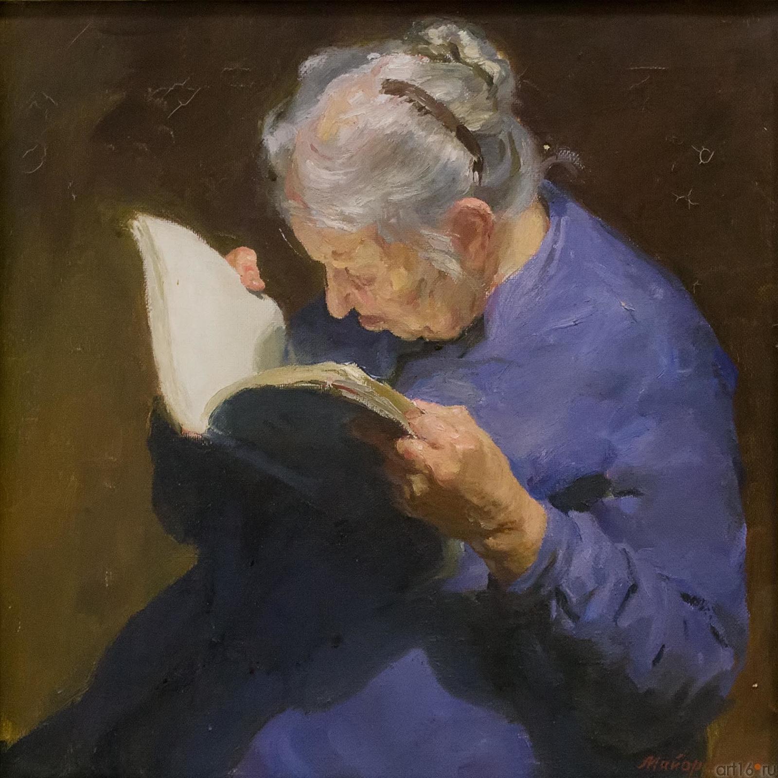 Фото №97101. За чтением. 1959. Майоров Б.И.(1931-1991)холст, масло; Собрание ГМИИ РТ.Если мы говорим о натюрмортах, то говорим о творческой лаборатории. И здесь очень хорошо видно, как эволюционировал художник, начиная с первых работ, смысловых натюрмортов (это его «Блудня», натюрморт с «Монахом», со старыми вещами). Когда художник к концу своей жизни влюбляется просто в предмет, пишет его, отдавая самого себя освоению, или знакомству. Каждый раз он знакомится заново с живописным языком, с возможностями живописного языка… На выставке мы видим лучшие образцы этой реалистической академической живописи.»