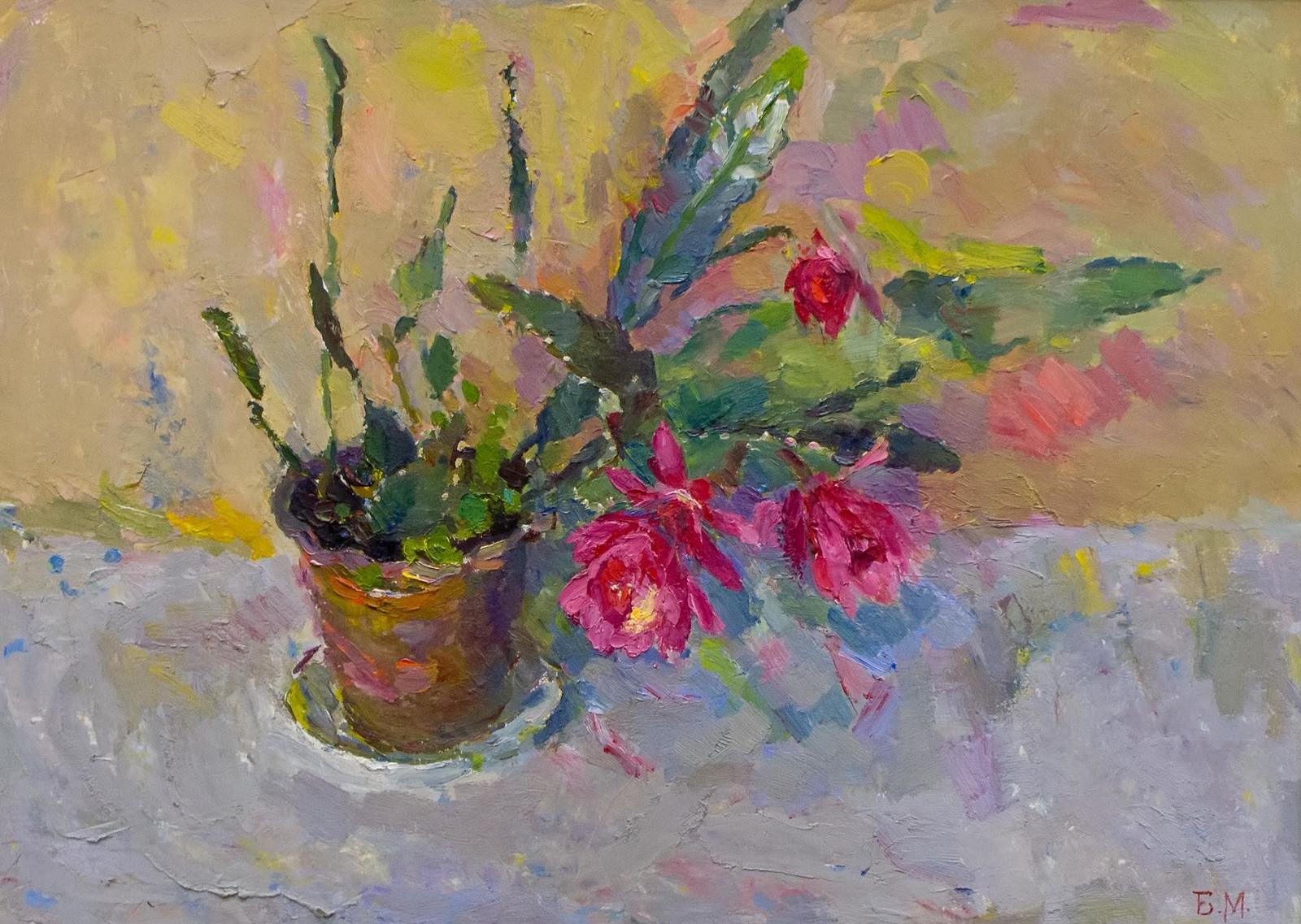 Фото №97125. Цветущий кактус. 1978. Майоров Б.И.(1931-1991)картон, масло; Собственность ГМИИ РТ.Борис Иванович Майоров за свою жизнь создал более 400 произведений живописи и графики. Выставка, приуроченная к 80-летию художника, состоит из лучших его произведений, хранящихся в фондах ГМИИ РТ и архиве семьи художника. Отдавая должное семье Майоровых, хочется отметить, что наследники художника (жена, дети, внуки) бережно хранят коллекцию работ Майорова Б.И. в том состоянии, в котором ее оставил сам художник, не продают картины, не разбрасываются ими, а с должным почтением берегут.