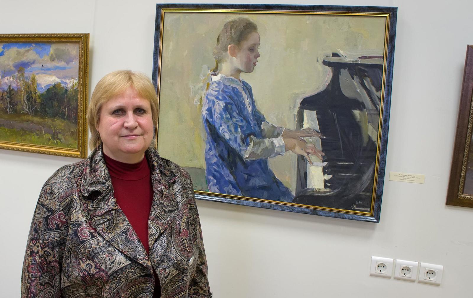 Фото №97261. Ольга Борисовна Майорова у своего портретаОльга Борисовна Майорова, зав. каф. “Фортепиано” Казанской государственной консерватории;На открытии выставки присутствовали дочери художника: Ольга Борисовна и Мария Борисовна Майоровы; внуки: Иван Александрович Майоров и Анастасия Александровна Киселева. Жена художника, Татьяна Михайловна Юдина, не смогла прибыть по состоянию здоровья. Ольга Борисовна Майорова, зав. каф. «Фортепиано» Казанской государственной консерватории; Мария Борисовна Майорова, преподаватель детской школы искусств в Вахитовском районе г. Казани. (музыкант): Иван Александрович Майоров, художник, выпускник КХУ; Анастасия Александровна Киселева, студентка КАИ, (окончила Муз школу). От имени семьи художника к присутствующим обратилась Ольга Борисовна Майорова: — Несколько штрихов Ольга к портрету отца. Галина Алексеевна, как опытный искусствовед, начала разбирать портреты, натюрморты. Я сижу и думаю: " А если бы отец был на открытии выставки, он бы сказал, что все эти работы надо доделывать. Это только этап. Нужно как следует поработать над ними, это все еще поиск».