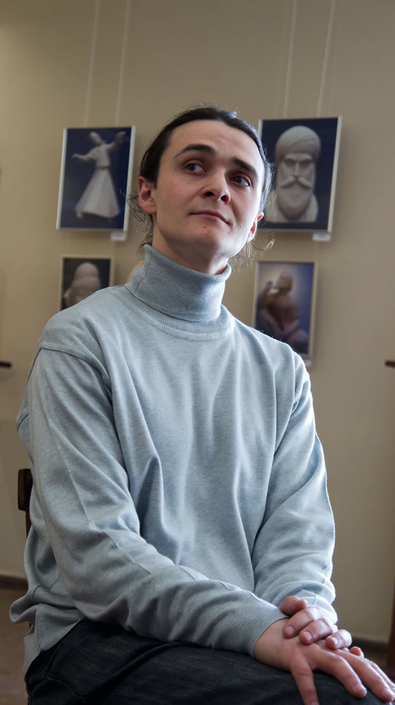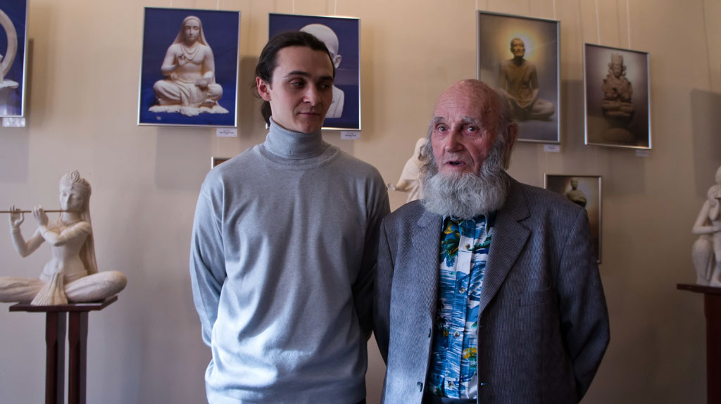 Фото №97437. Алексей Леонов. Закрытие выставки "Молитва в скульптуре"14.04.2012, Музей Горького, Казань— Мои мысли вслух — это моё творчество, моё чаяние, устремление, — делится Алексей — а импульс и вдохновение — две движущие силы, которые способствуют появлению того или иного образа. В детстве Алексей не мечтал о профессии скульптора, хотя лепил с раннего возраста. Не лепить не мог. Засыпал с мыслями о том, что вылепит завтра. Уже в шесть лет пластилин Алеша заменяет на глину. В этом же возрасте А. Леонов испытывает первый мощный импульс. Как-то в Киеве, проезжая по мосту через Днепр он, впервые, близко видит скульптуру Родина-Мать, и та, так сильно впечатлила мальчика, что он сказал: «Я вырасту и такую же слеплю». Лет в 14–15 Алексей понял что то, что он делает может нести какую-то энергию: скульптура может быть энергоёмкой и влиять на людей. — Я учился в художественной школе, но не собирался становиться скульптором, — вспоминает А.Леонов — себя видел специалистом в области математики (точные науки мне очень нравились и хорошо шли. Несмотря на материалистичность во взглядах, я всегда был религиозным человеком. Мне не мешало молиться и на уровне мировоззрения быть материалистом. К осознанию своей миссии Алексей пришел в 19 лет. Именно, с этого периода начинается монолитный цикл его творчества. Выставка в Казани посвящена популяризации самых лучших представителей человечества. По мнению Алексея Леонова: — Лучшие представители человечества становятся ведущими маяками, которые вдохновляют нас становиться лучше. Для нас очень важно иметь пример высоких человеческих достижений. В сокровищнице человеческого духа заключены беспредельные возможности. К ним будем стремиться, объединяться на почве этих общечеловеческих ценностей. Каждый культурный герой, каждый подвижник, святой, независимо от того какую он представляет религию, становится общечеловеческим лидером, потому что выражает, те высокие достижения человеческой мысли, внутренние способности, которые заключены с таких свойствах, как Вера, Надежда, Любовь и их мать София (великая премудрость).