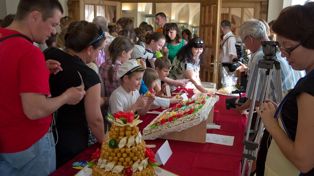 Фото №99495. Игра «В поисках клада»На втором этаже — ярмарка чак-чака. Казанский и Набережно-Челнинский комбинаты соревнуются за право быть названным лучшим. Судьями стали люди, пришедшие на музейный праздник, и представители СМИ. Дегустация чак-чака плавно перешла в чаепитие.