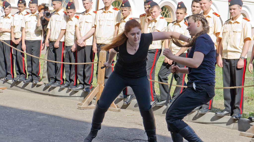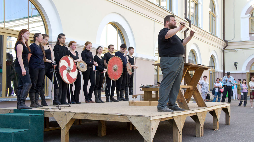 Фото №99531. Сам ХабаровВ.Хабаров рассказывал о холодном оружие, его речь сопровождалась показательными боями.