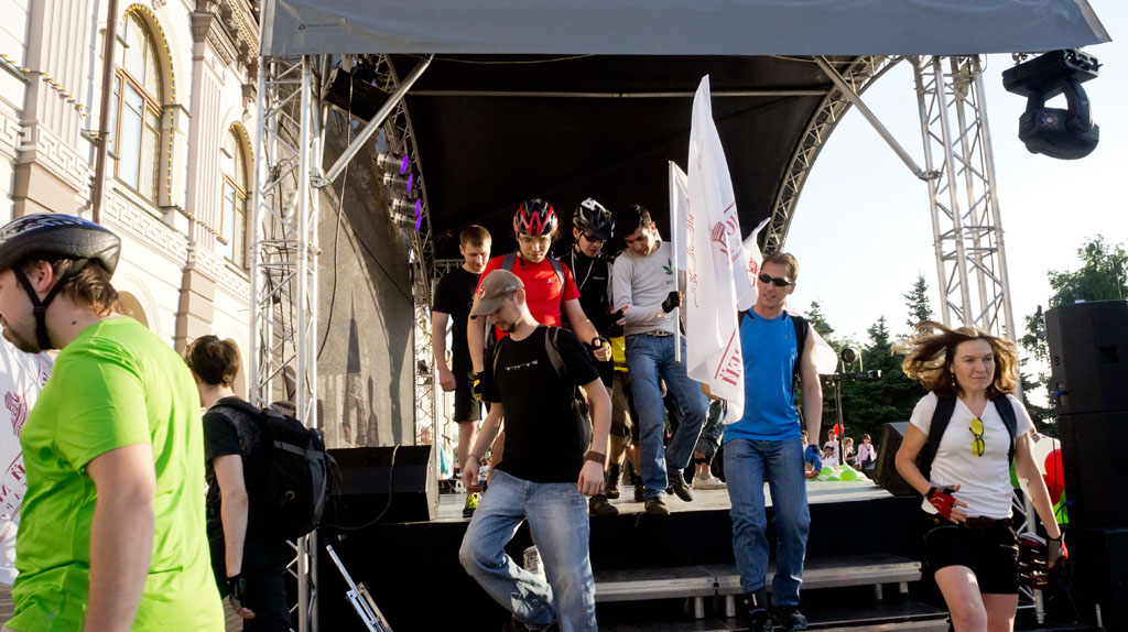 Фото №99579. Дефиле.Театр моды ИльданФинал концерта ознаменовался передачей флагов НМ РТ велосипедистам и те, ударив «велопробегом по бездорожью» умчались на городские улицы Казани.