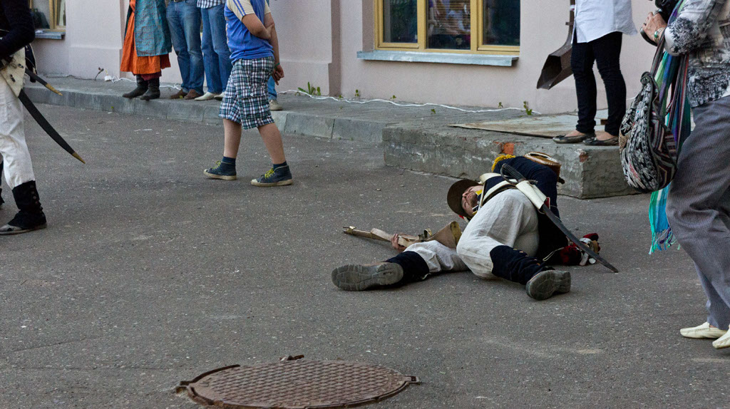 Фото №99623. Владислав ХабаровОт входа действие переместилось в музей. Немного побродив по залам музея, отдохнув, попив чайку, «хабаровцы» отправились во внутренний дворик. Батальные сцены, сопровождаемые грохотом, порохом и дымом. И та, и другая воюющие стороны несли потери.