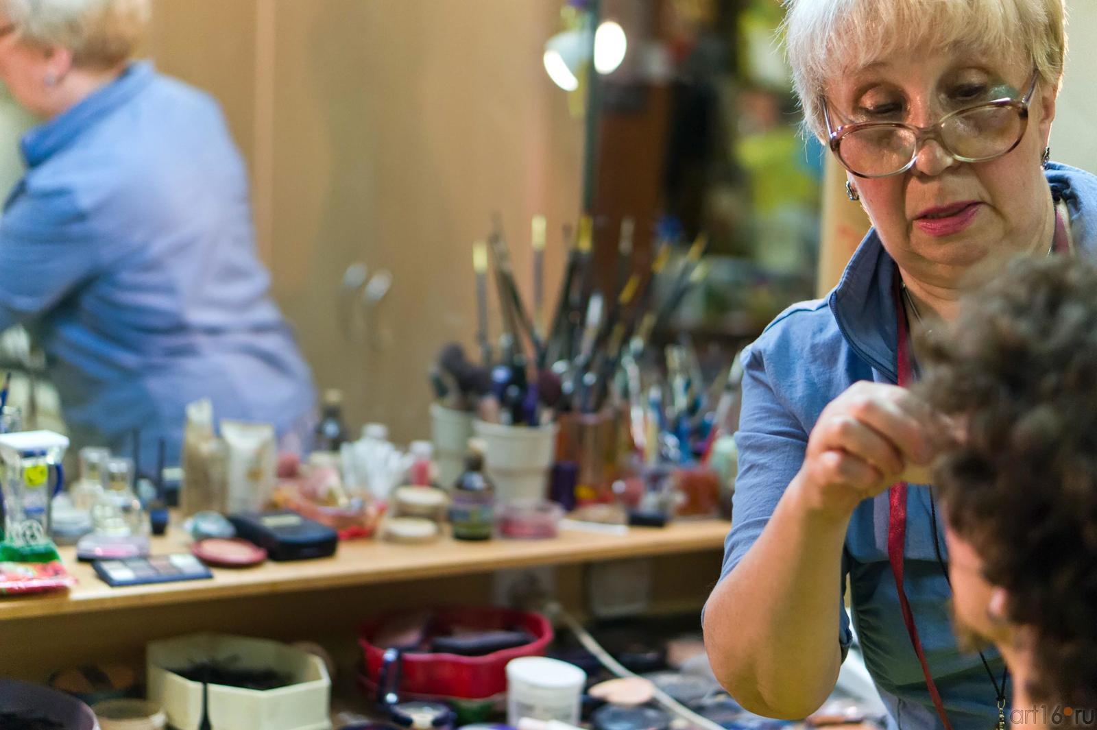 Фото №102148. Art16.ru Photo archiveТГАТОиБ повезло, уже сорок лет художником-гримером театра работает Сания Мавровская (родственница знаменитого художника Магдалены Мавровской). До прихода в театр она много ездила по Татарстану, участвовала в раскопках Болгара, там прошла серьезную “школу общения и общего развития”. Изучая на раскопках исторические пласты, Сания Мавровская все ближе и ближе подходила к делу своей жизни. И с 1972 года её жизнь тесно переплетена с казанским оперным. — Грим связан с историей. Меня больше привлекают исторические персонажи в гриме — поделилась Мавровская. Вот и сейчас она наносит грим «Наставника» Стасу Сырадоеву, заслуженному артисту РТ.