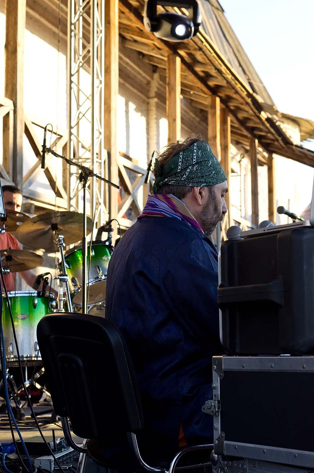 Фото №104936. Art16.ru Photo archive«Джаз Бас Театр» представил на суд зрителей программу «Плывет лебедушка». Мелодичное пение Варвары Котовой, азартная игра на ударных, саксофон и клавишные слились в причудливую этническую мелодию, от которой зрители были в восторге.