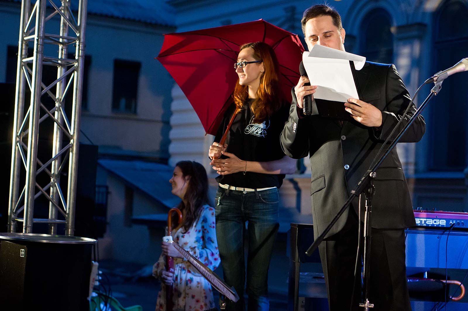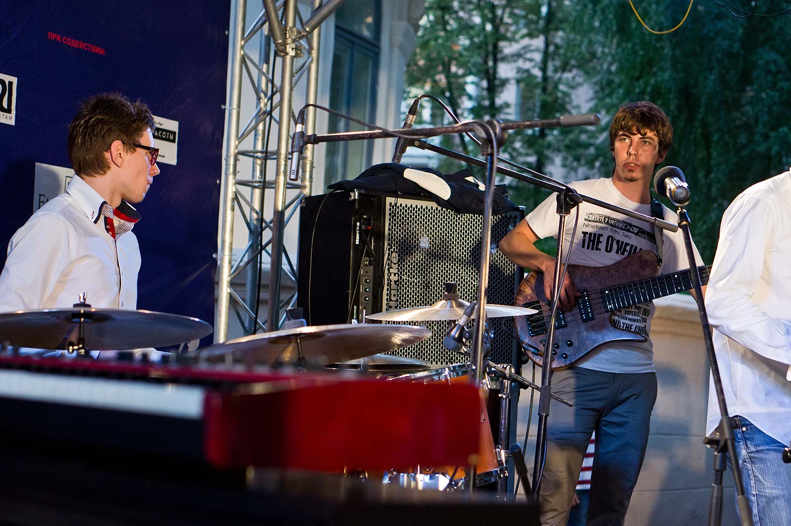 Евгений Ярын — бас-гитара.За время антракта посетители концерта смогли осмотреть выставку известного казанского фотографа Фарида Губаева «Геометрия Казани», ответить на вопросы викторины, устроенной для них ведущими, а так же свободно пообщаться и насладиться обществом