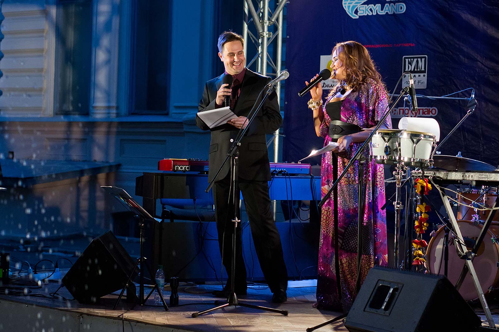 Фото №108049. Илья Славутский, Ольга Скепнер. 26.07.2012«Джаз в Усадьбе Сандецкого», КазаньОбещают собравшимся, что на концерте они получат море положительных эмоций и море драйва.