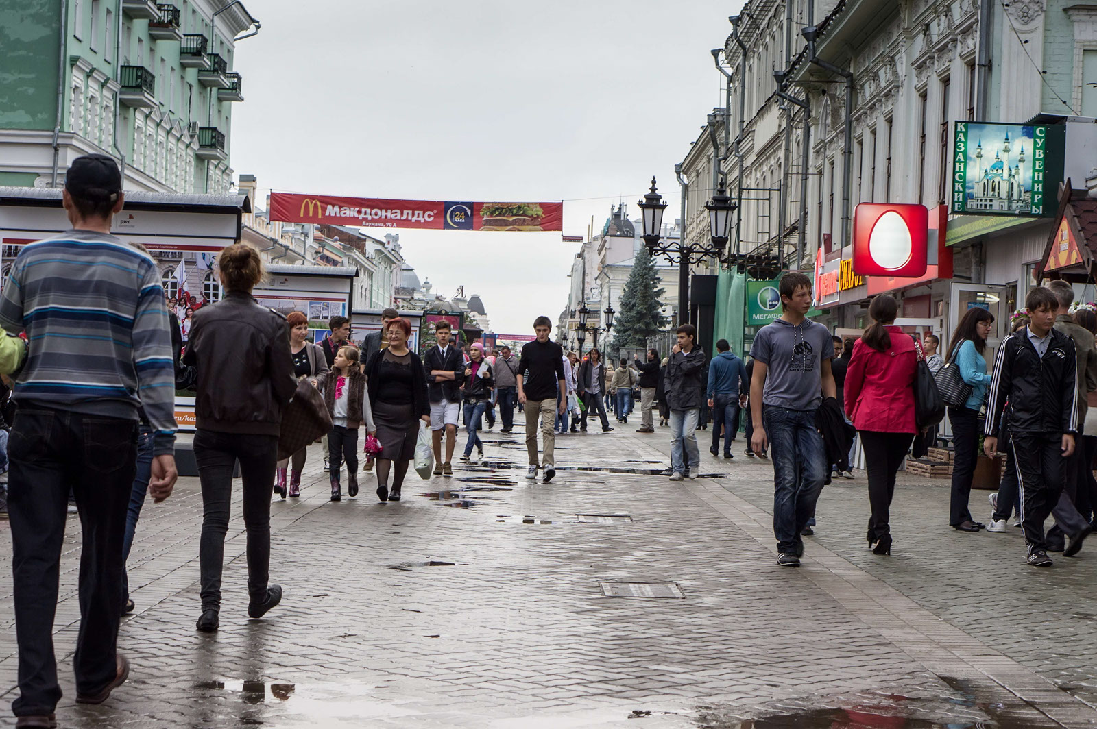 Фото №112945. Art16.ru Photo archiveО празднике на улице Баумана ничего не напоминало. Обычный будний день. Туристы и горожане, редко выбирающиеся в центр города, фотографировались у замечательных фонтанов («Водяная», «Голуби», «Лягушки»). Как всегда, у кареты можно было запечатлеть себя с живыми голубями. На этом, пожалуй, экскурсию по ул. Баумана можно завершить.
