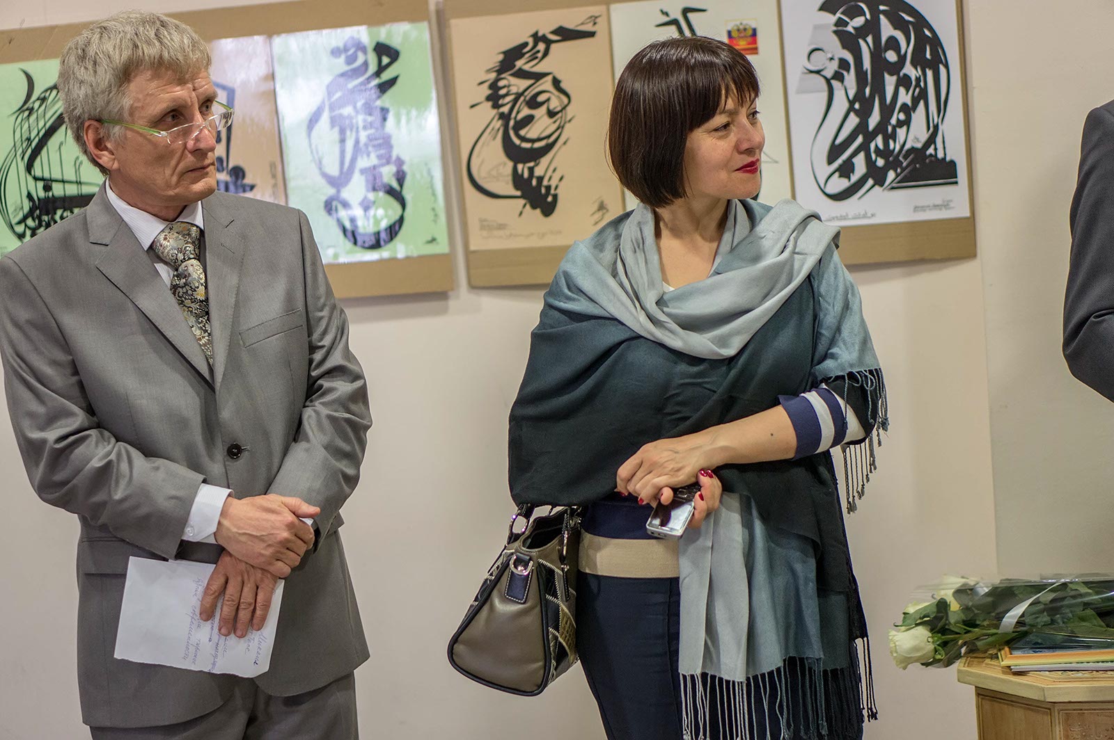 Фото №116260. Михаил Яо, Зиля Явгильдина. Открытие выставки "Единение" В.Попова— У меня возникла гордость за то, что в нашей стране, действительно, искусство каллиграфии процветает. Владимиру Александровичу, пожелаю долгих лет жизни, для того, чтобы он мог научить, как можно больше людей, студентов, заинтересовать их искусством каллиграфии — поделился своими мыслями с аудиторией