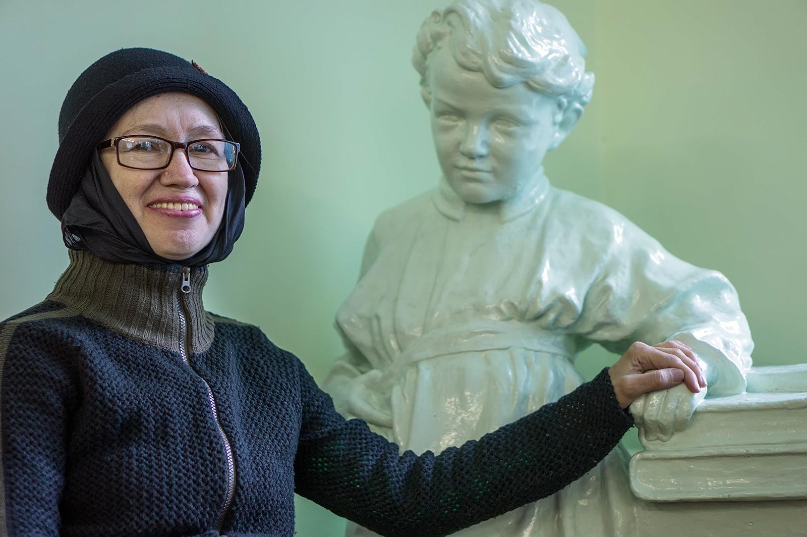 Фото №116394. Наиля Ахунова и скульптура Володи Ульянова. Арская Центральная библиотека