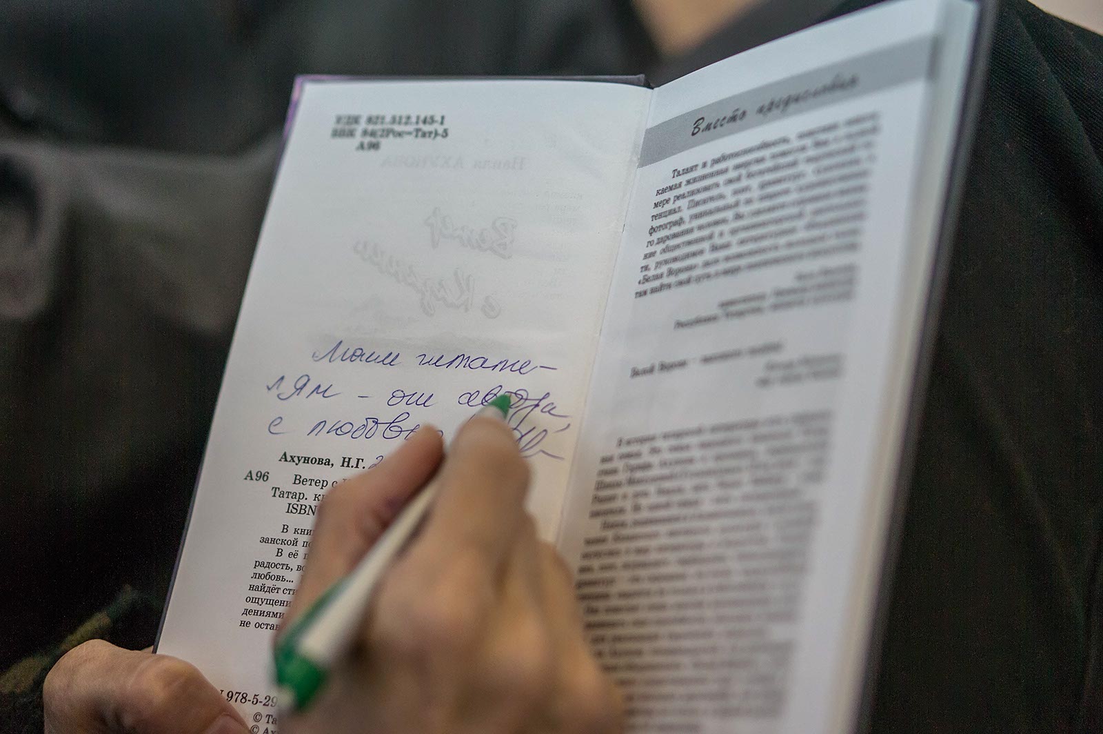 Фото №116580. Дарственная надпись на книге Н.АхуновойПремия была учреждена 5 лет назад по инициативе главы Арского муниципального района Алмаса Аминовича Назирова. Этот шаг глава района сделал, дабы оказать дань уважения своему знаменитому земляку — Гарифу Ахунзяновичу Ахунову.