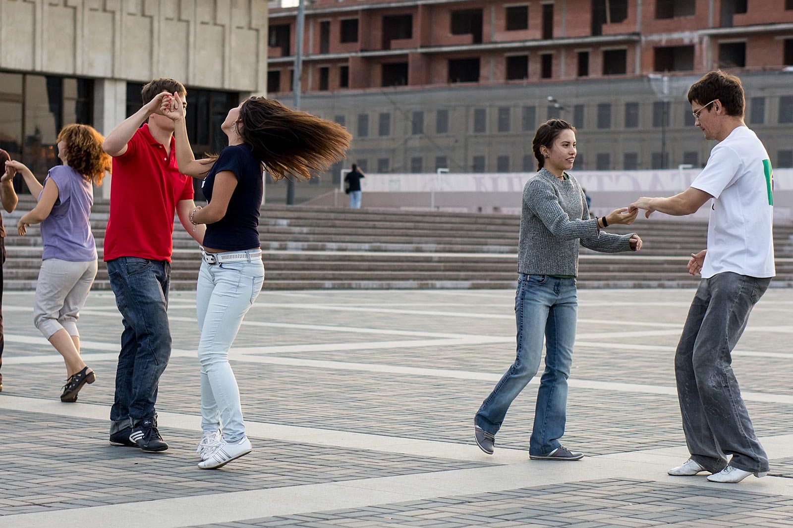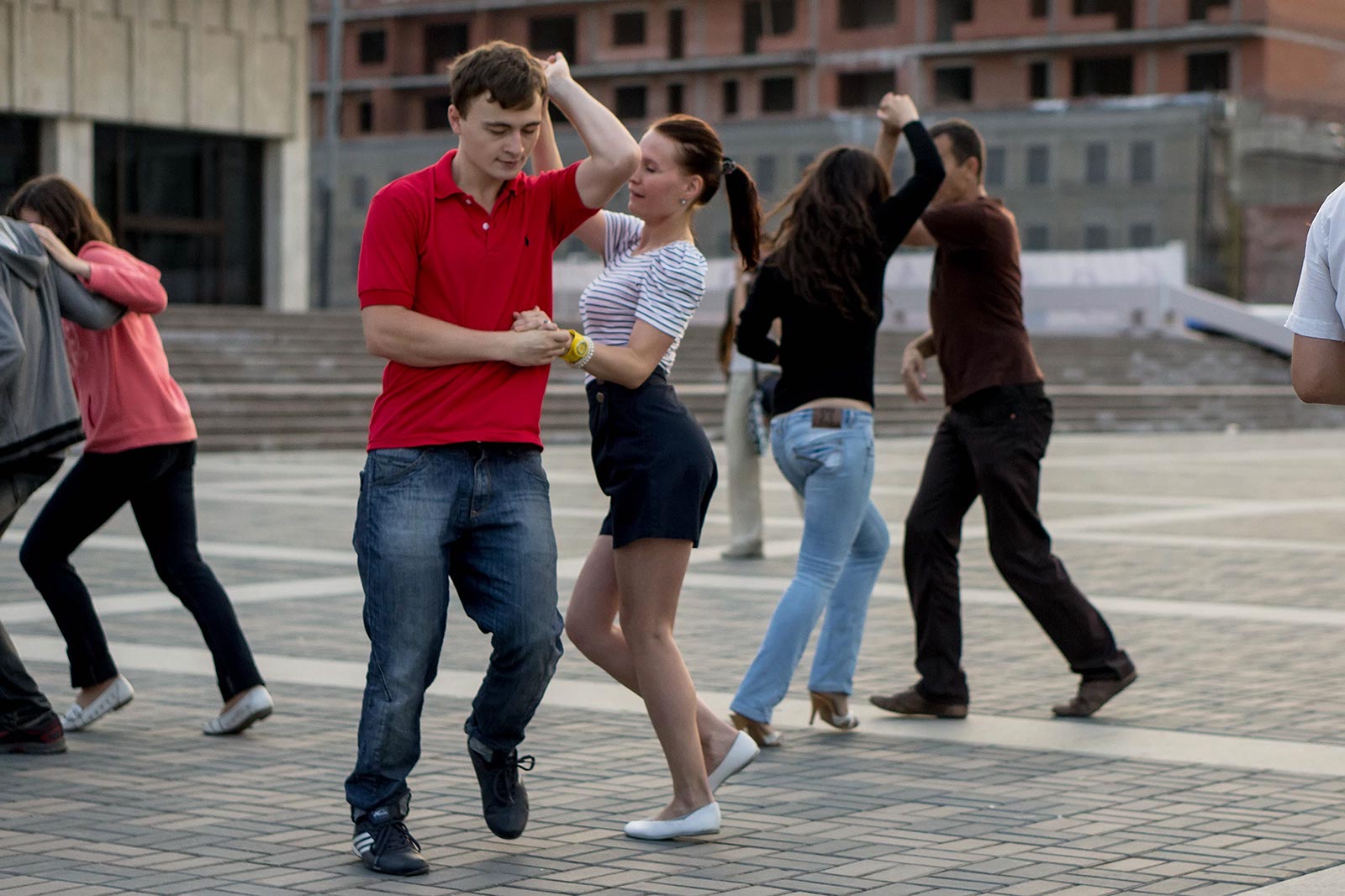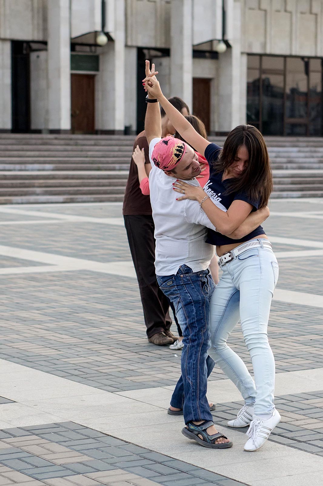Фото №120238. Танцуем сальсу. Казань, площадка перед театром Г.Камала, август 2012Всякий раз, танцуя с очередным партнером, ты будешь танцевать другой танец, не похожий на предыдущий. Предела совершенства нет.