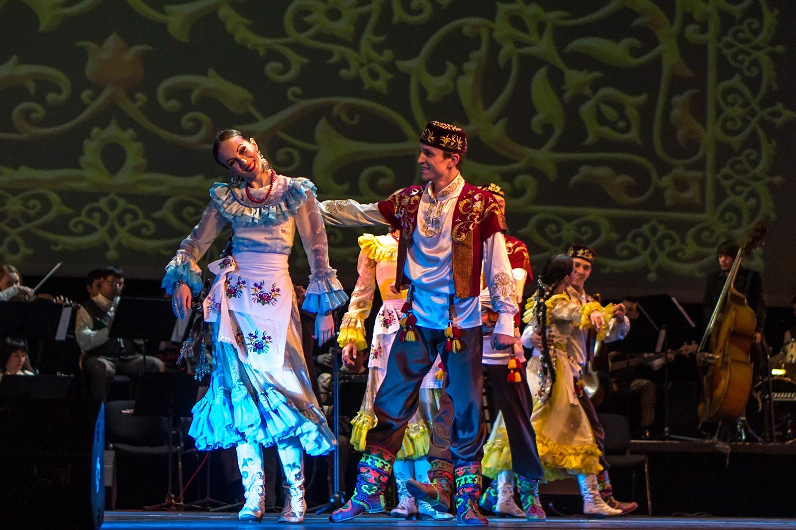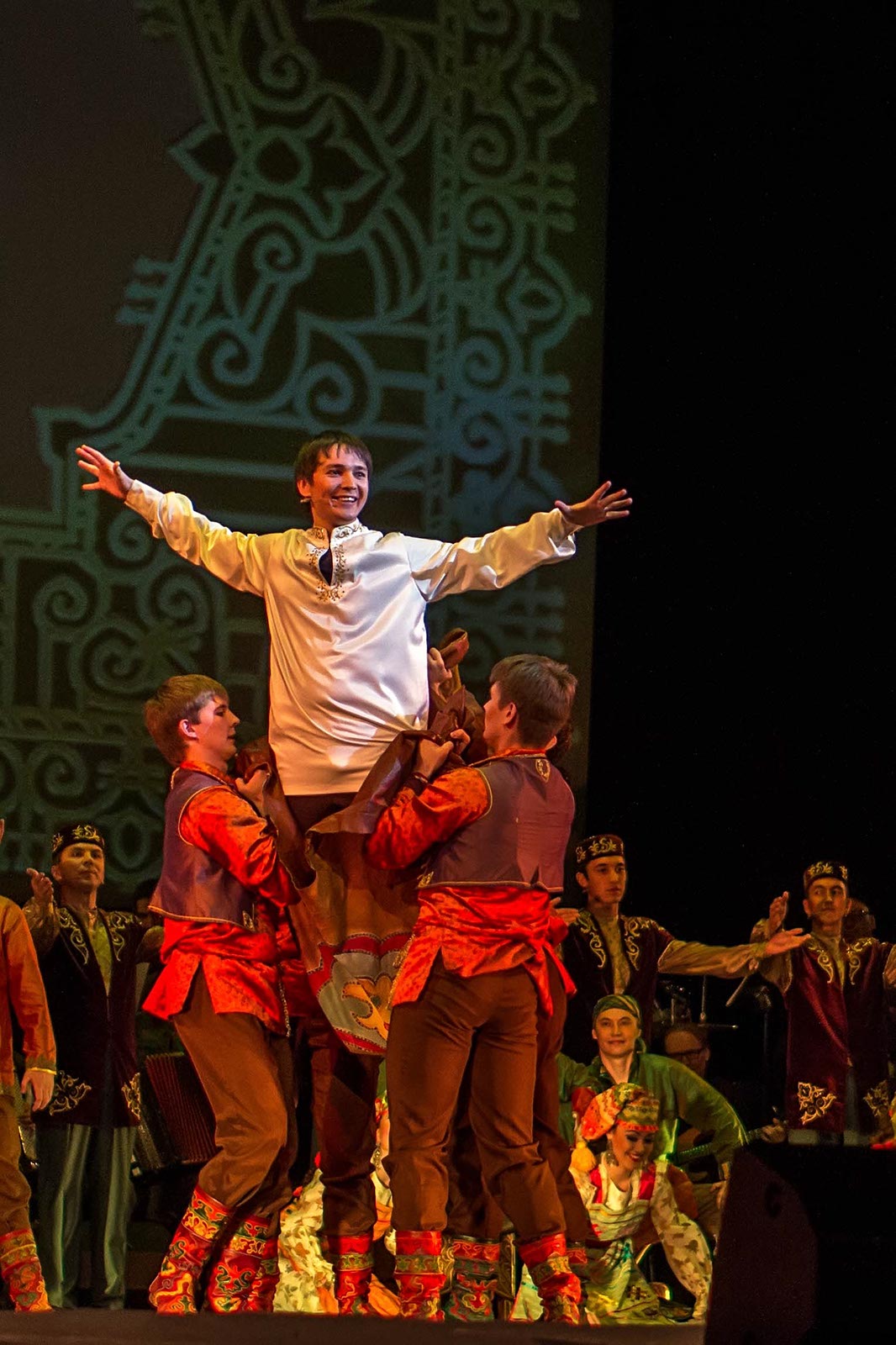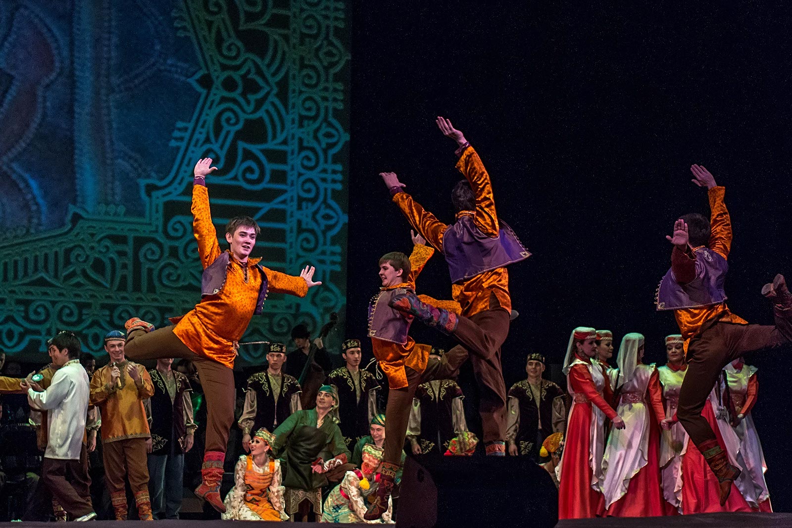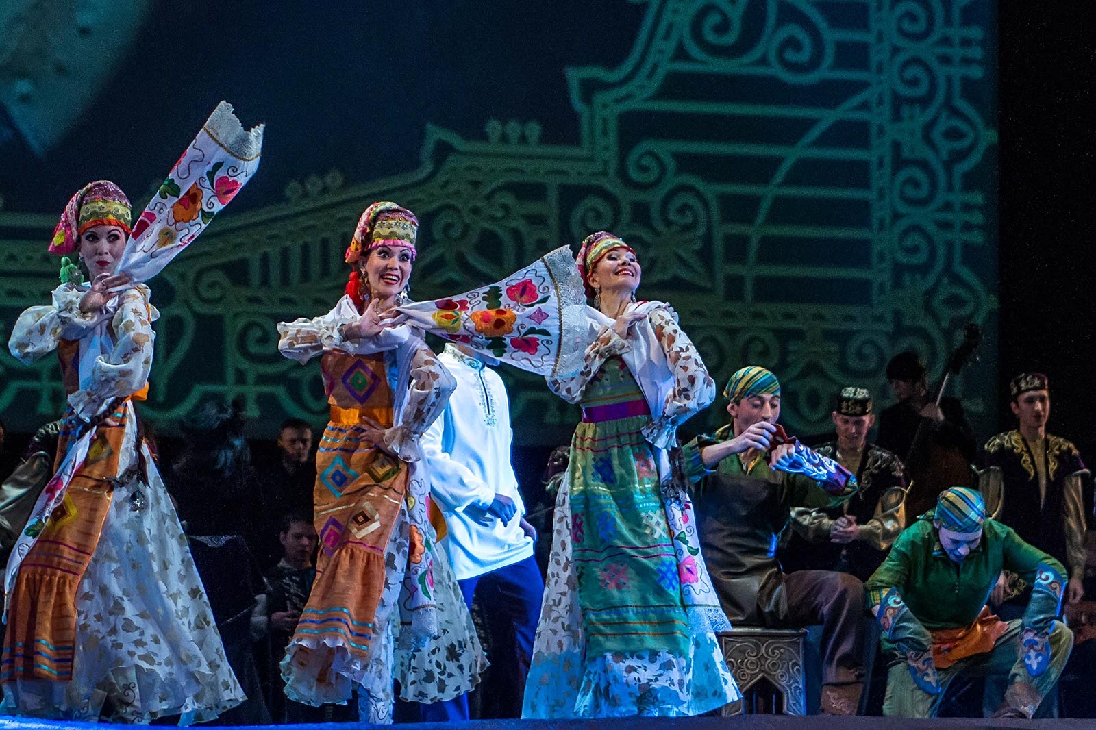 Фото №121194. Art16.ru Photo archiveЗрители наряду с привычными татарскими мелодиями, основанными на пентатонике, услышали электронную музыку, рэп. Инородным вкраплением в традиционные народные танцы татар стали современные танцы улиц. Но это быль лишь один эпизод в сюжетной