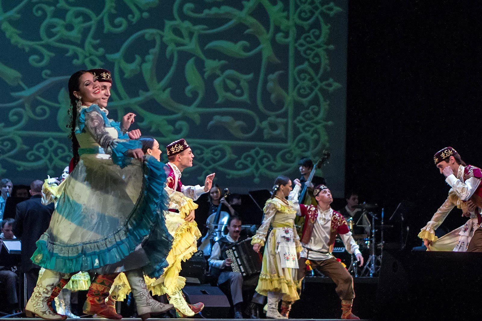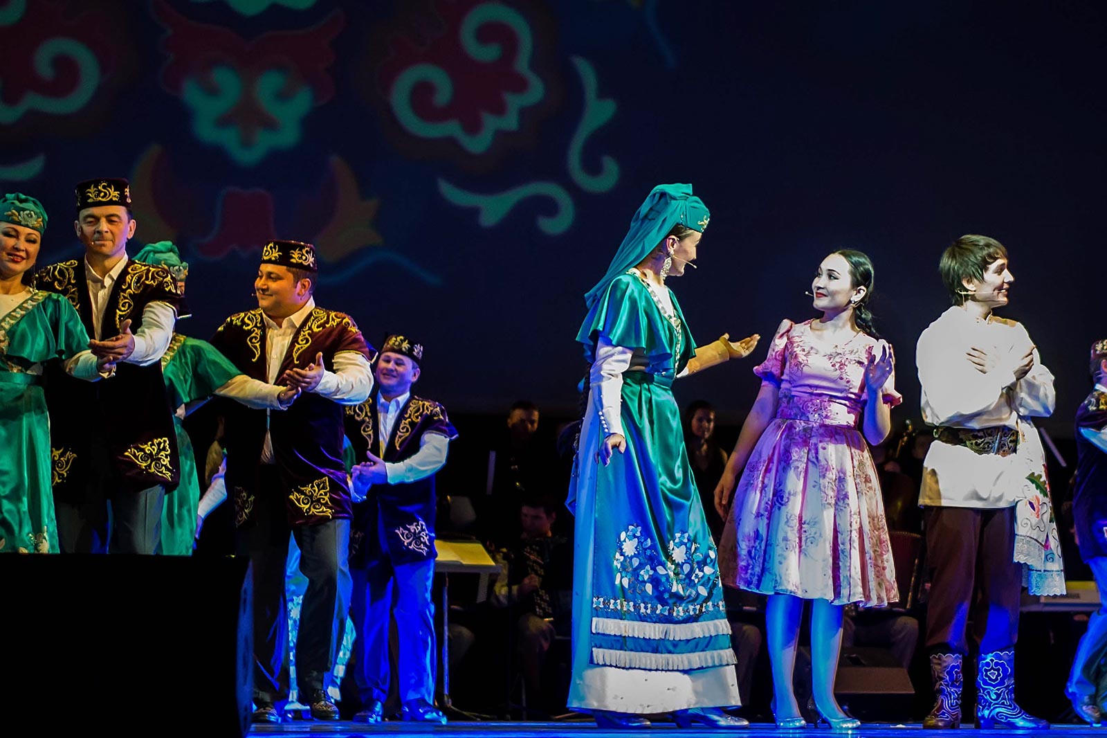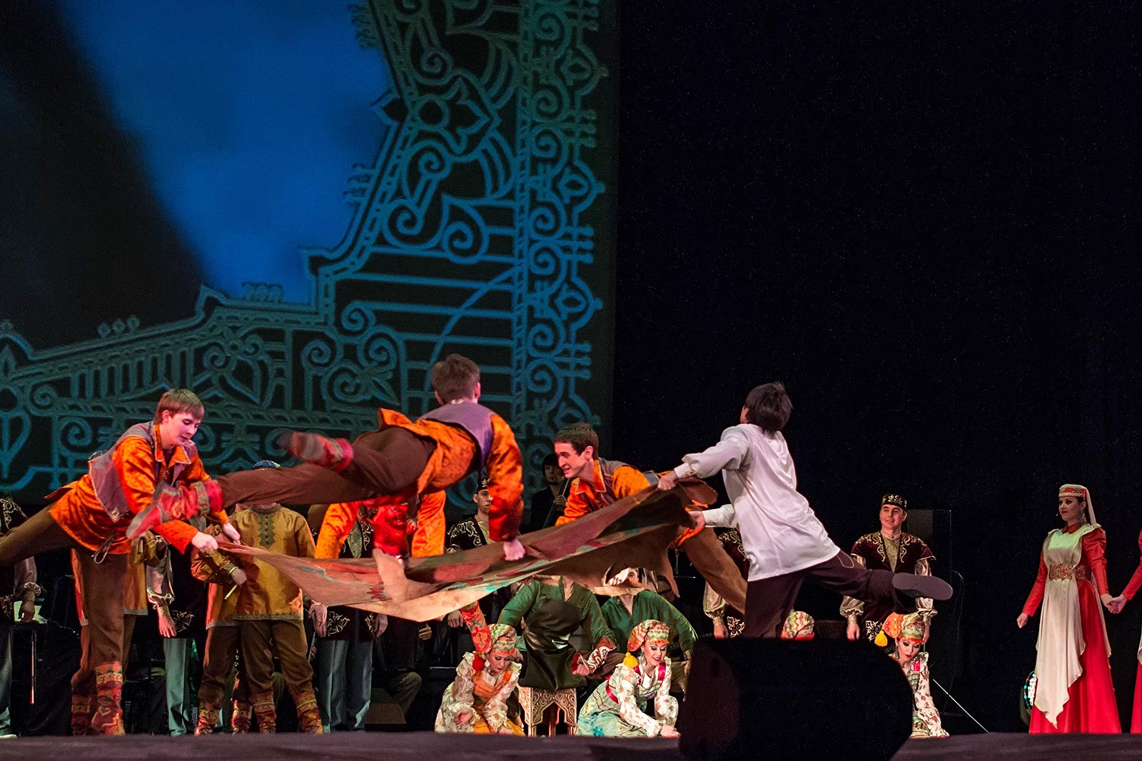 Фото №121194. Art16.ru Photo archiveЗрители наряду с привычными татарскими мелодиями, основанными на пентатонике, услышали электронную музыку, рэп. Инородным вкраплением в традиционные народные танцы татар стали современные танцы улиц. Но это быль лишь один эпизод в сюжетной
