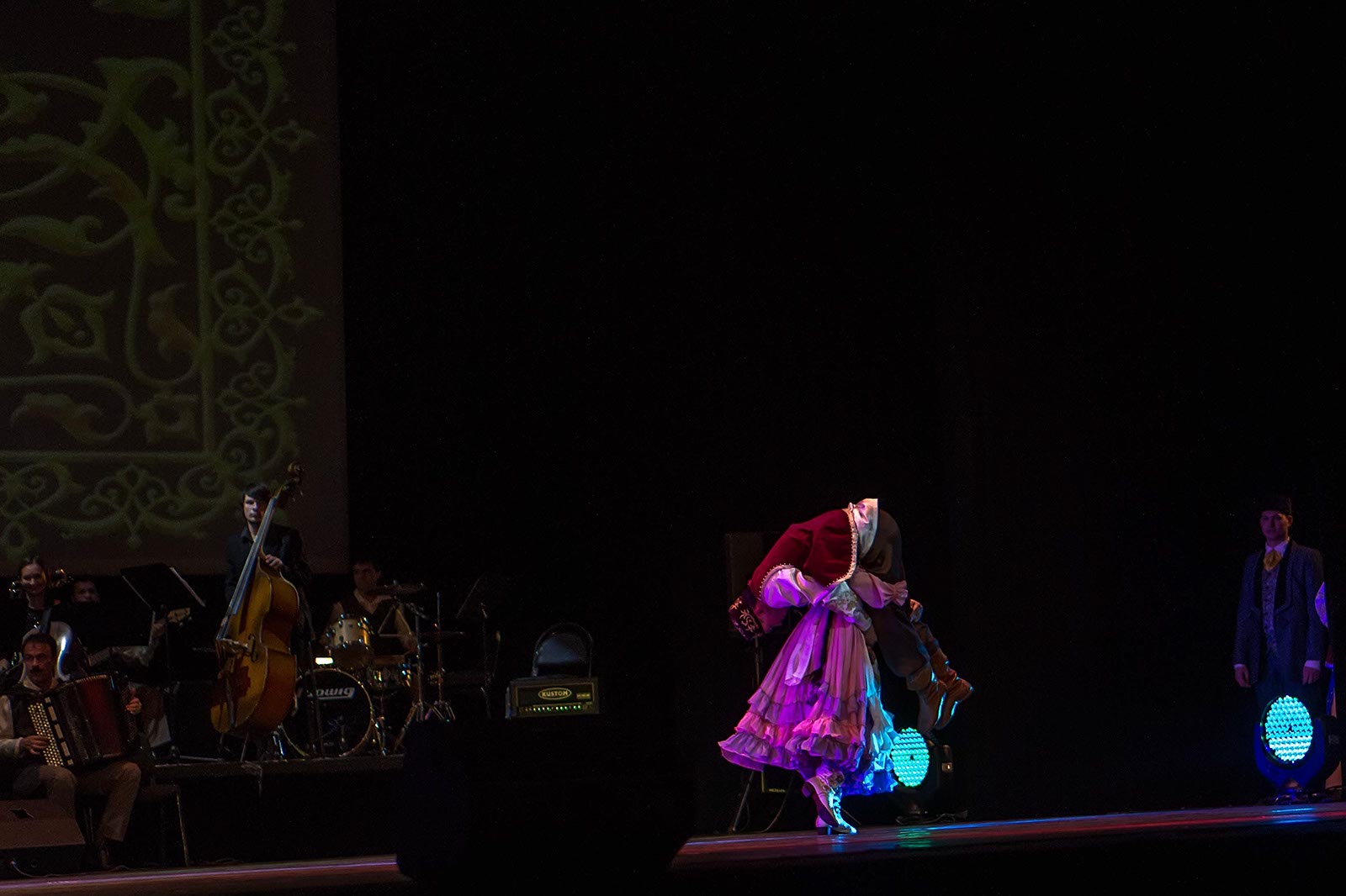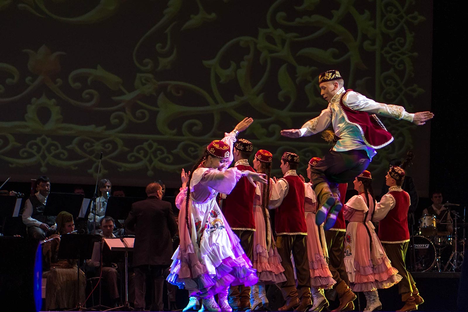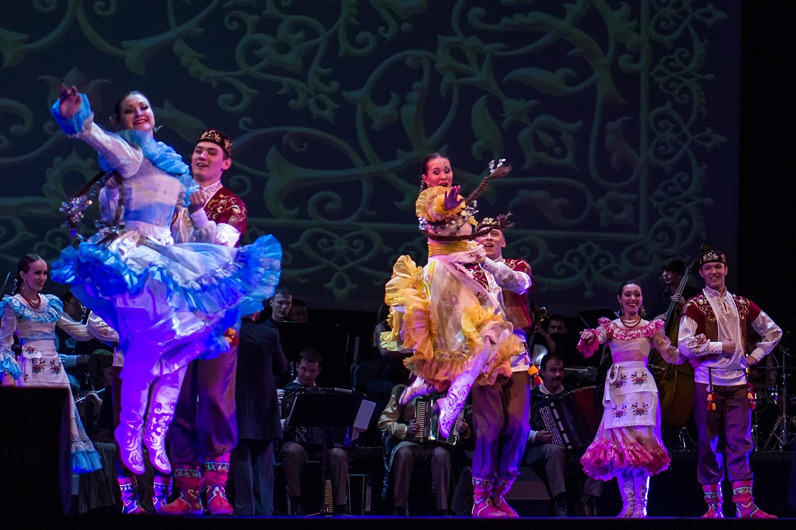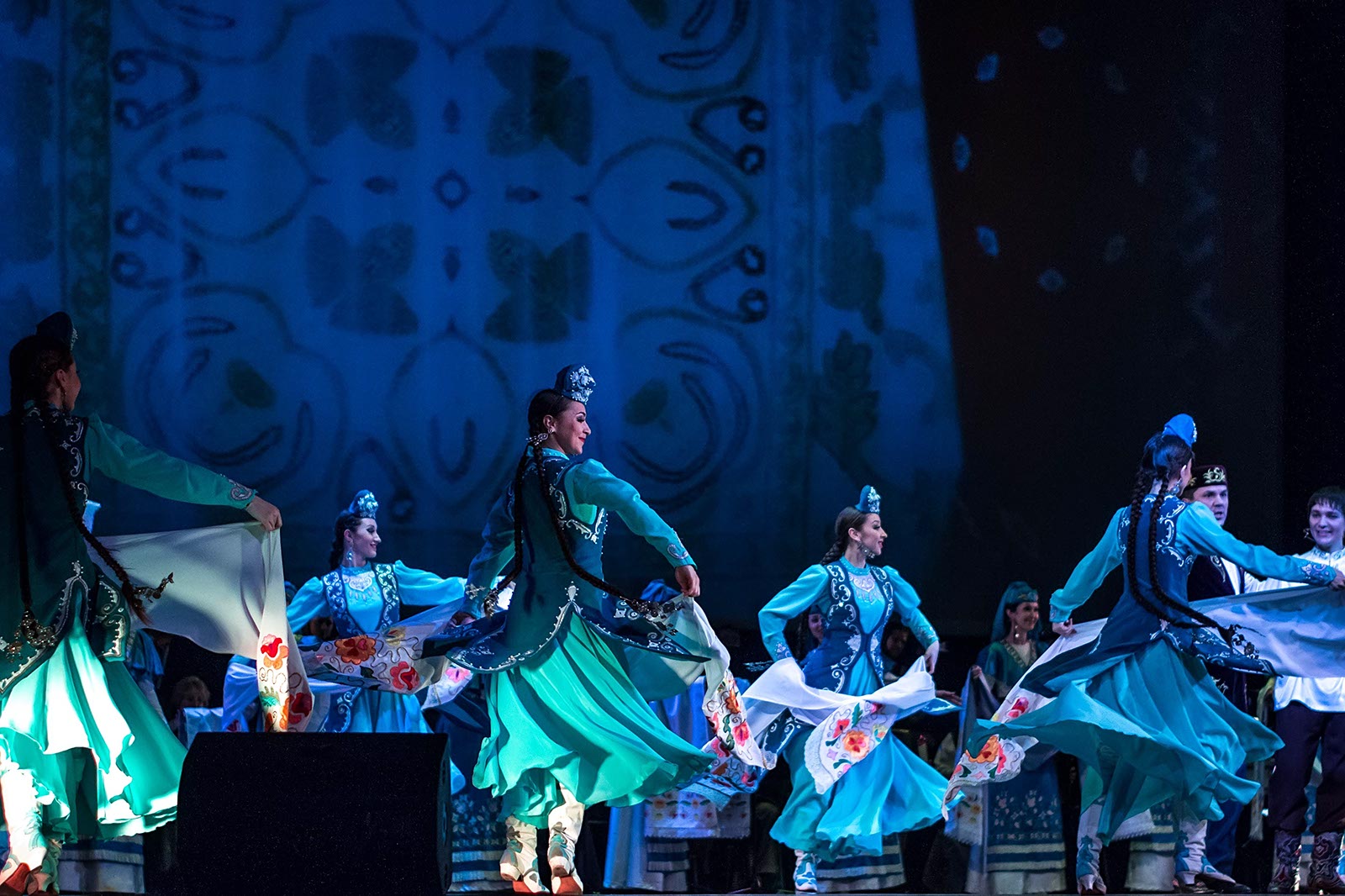 Фото №121194. Art16.ru Photo archiveЗрители наряду с привычными татарскими мелодиями, основанными на пентатонике, услышали электронную музыку, рэп. Инородным вкраплением в традиционные народные танцы татар стали современные танцы улиц. Но это быль лишь один эпизод в сюжетной