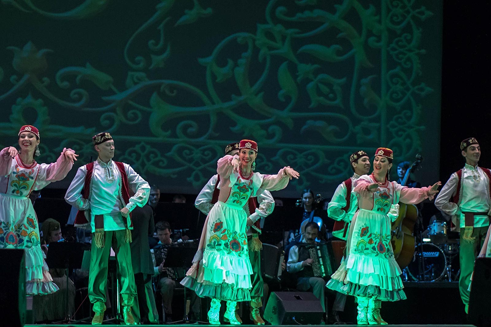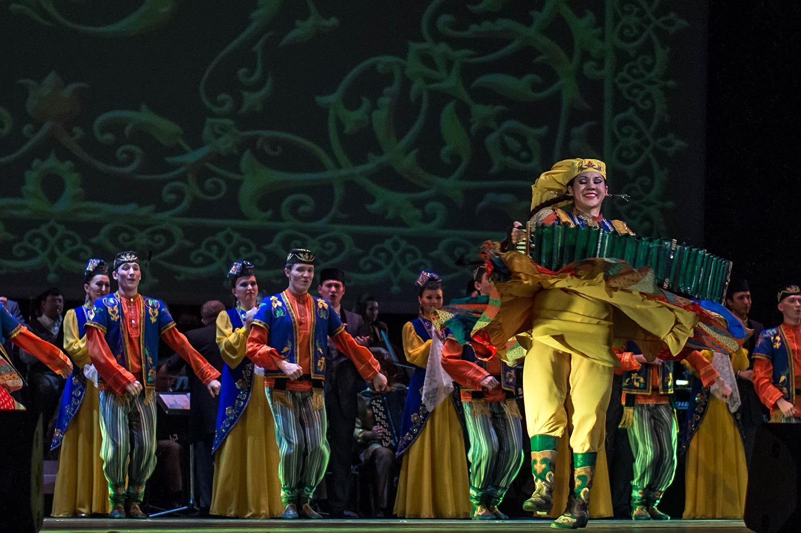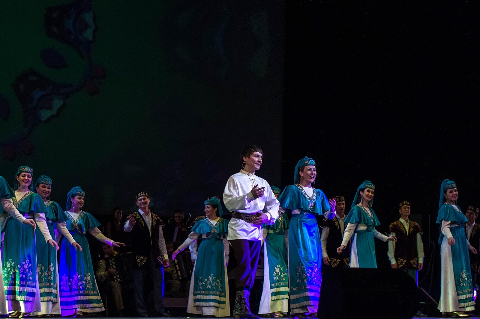 Фото №121476. Art16.ru Photo archiveАртистический состав Государственного ордена Дружбы народов ансамбля песни и танца Республики Татарстан насчитывает 66 человек, поименное перечисление артистов заняло бы много времени, посему были названы только руководители. Огласим список.