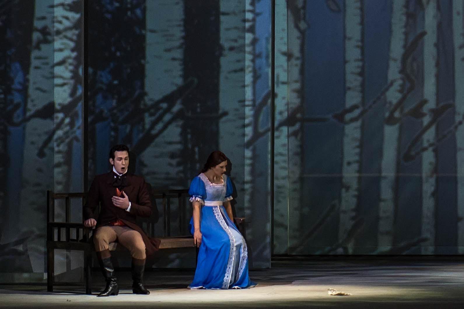 Фото №134045. Объяснения Татьяны и Онегина. Опера "Евгений Онегин. Действие 1-е, 3-я картина.Согласимся с мнением профессионала, но все же, сделаем выборку из творческих биографий исполнителей главных партий (Онегина, Ленского, Ольги и Татьяны Лариных). А также узнаем, был ли опыт исполнения данных партий у этих актеров, или же они исполняют их впервые.