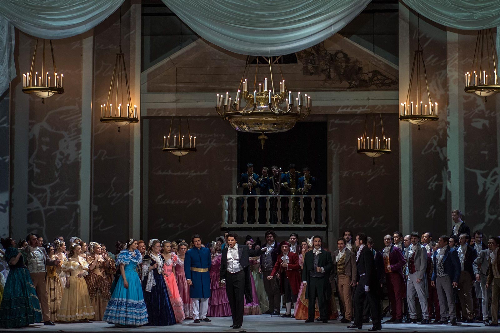Онегин -[tip: Владимир Мороз = Владимир Мороз в 1999 году окончил Минскую академию музыки (класс профессора А. Генералова). В 1997-1999 гг. - солист Национальной белорусской оперы (Минск), на сцене которой дебютировал в партии Евгения Онегина в одноименной опере Чайковского. В 1999-2004 гг. - солист Академии молодых певцов Мариинского театра. С 2005 года входит в состав оперной труппы Мариинского театра. ] (Мариинский театр, Санкт-Петербург);