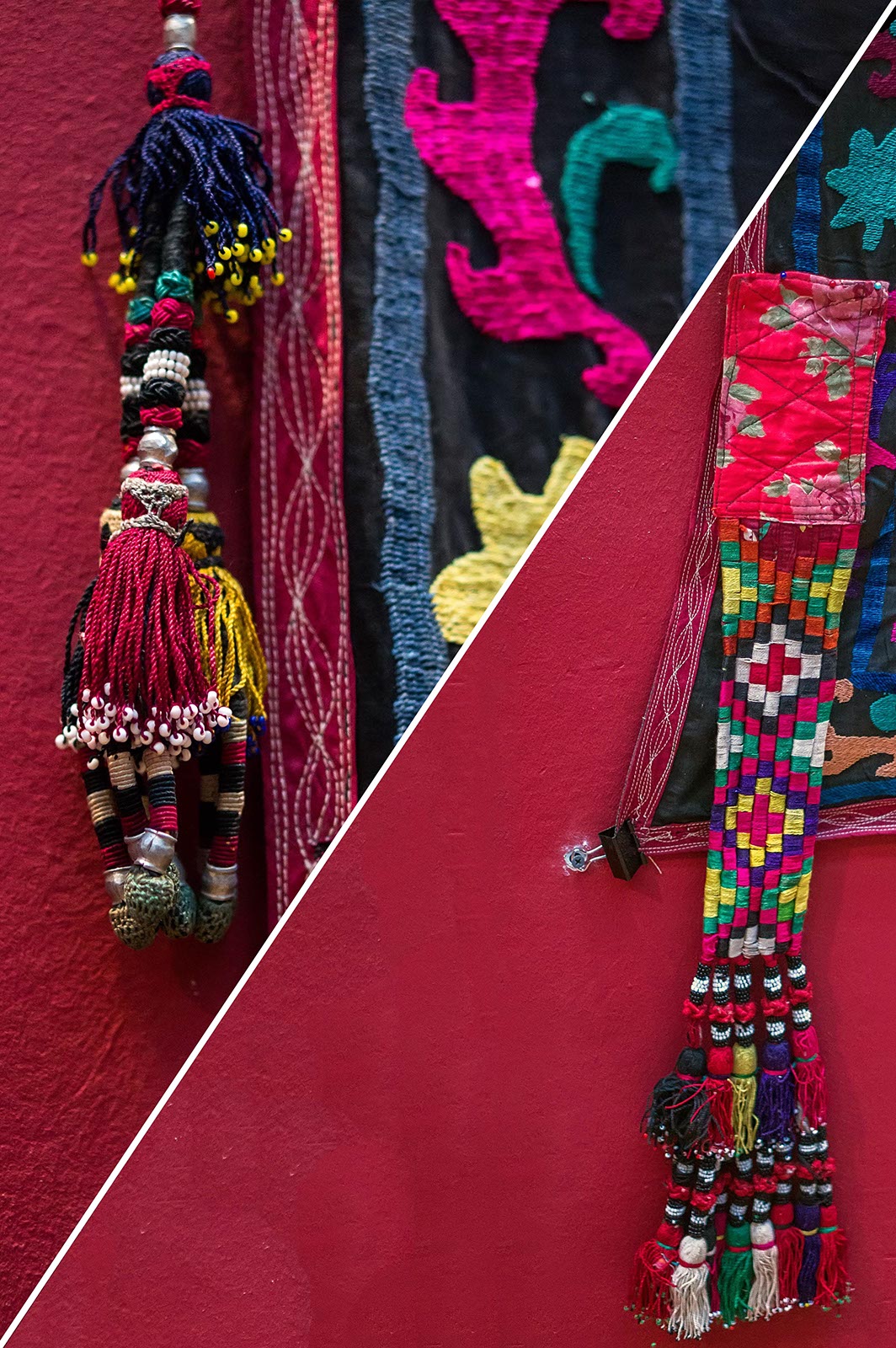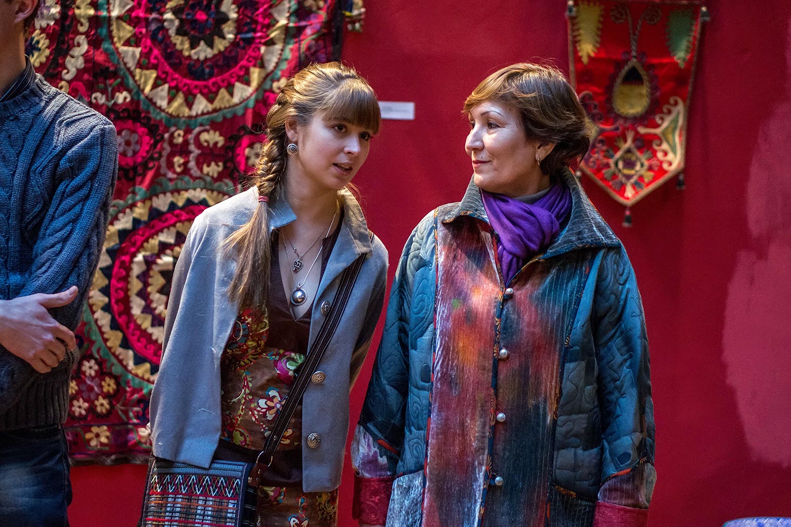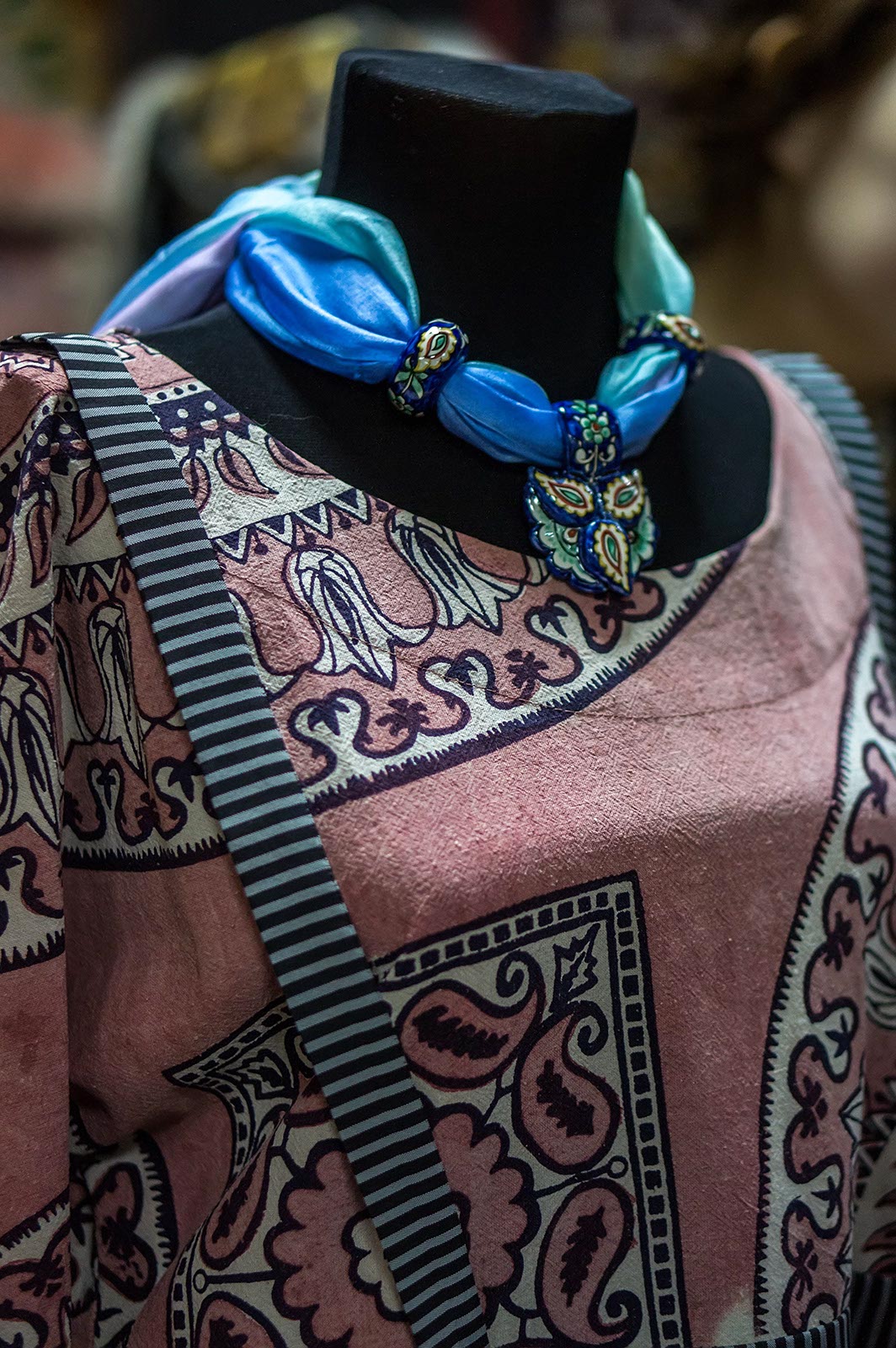 Фото №135803. Сюзане, элементы отделки На выставке экспонируется более 200 произведений искусства, также работает торговая лавка. В ней можно приобрести товары ферганских мастеров (платки, шарфы, головные уборы, сумки, украшения, текстиль и мн. др.). Возле торговой площадки стоит несколько манекенов в национальной узбекской одежде — авторская коллекция этнической одежды производства