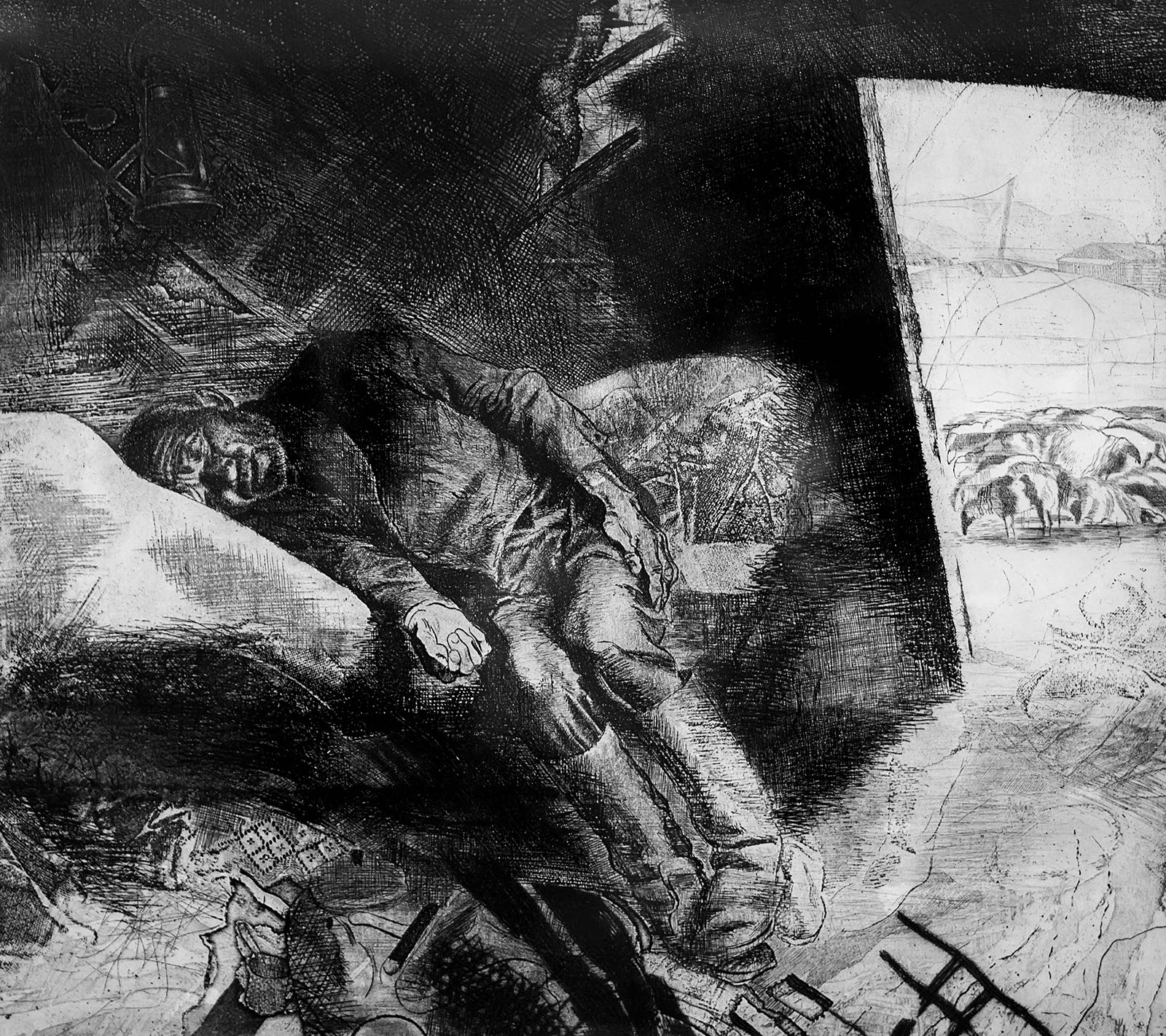 Фото №138362. СПЯЩИЙ ПАСТУХ. Из серии «ТУВА». 1984 Офорт, акватинта