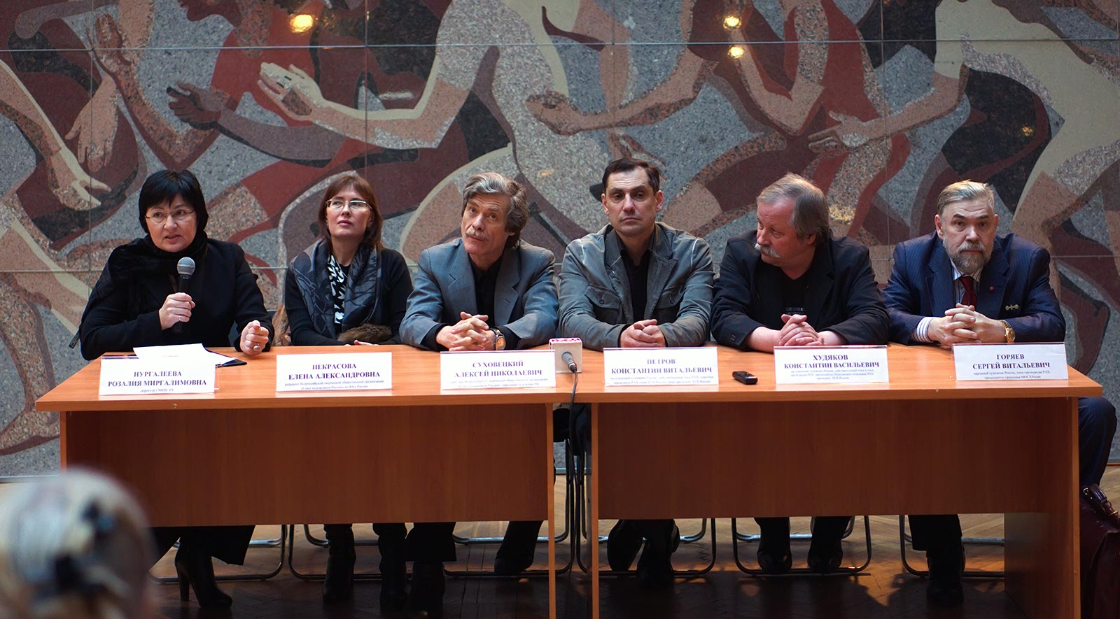 Фото №143420. Пресс-конференция перед открытием выставки «О, спорт! Ты —мир!»Нургалеева Р.М., Некрасова Е.А., Суховецкий А.Н., Петров К.В., Худяков К.В., Горяев С.В. "