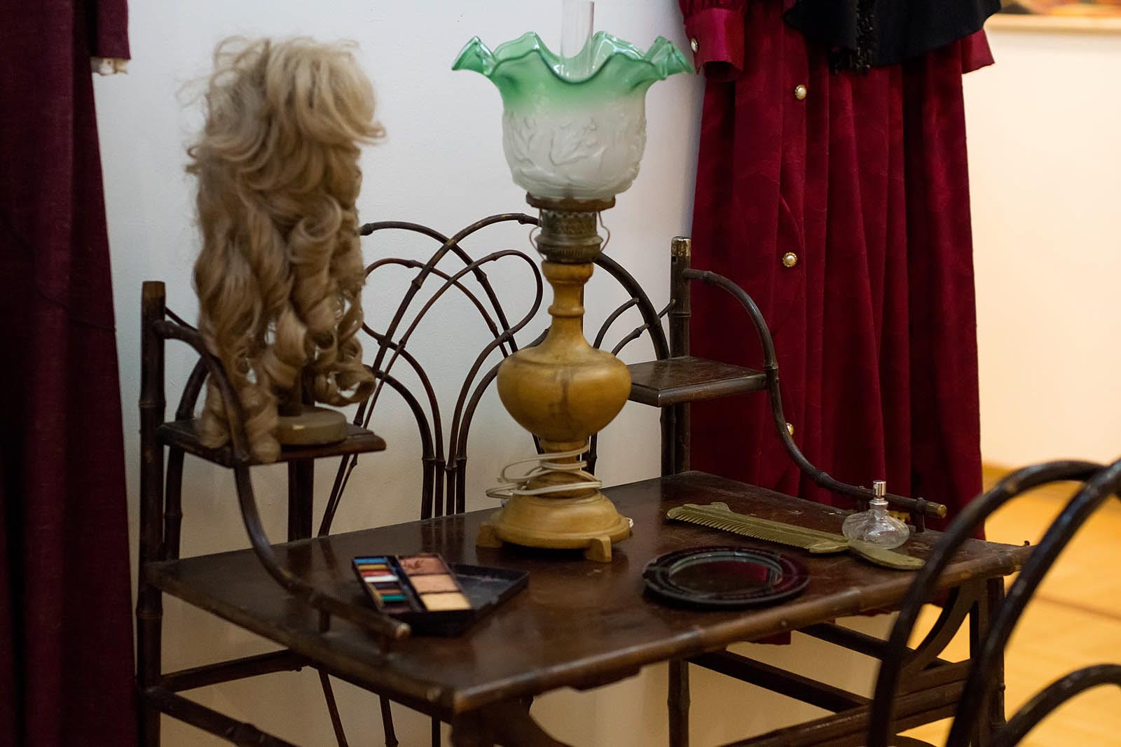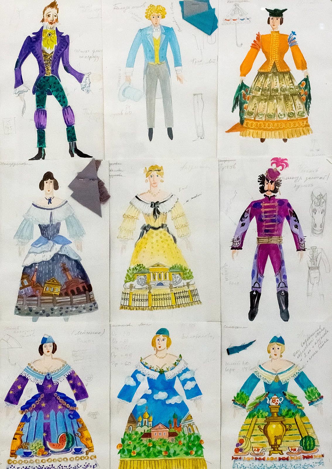 Вкраплениями в экспозицию включены уголки с театральными костюмами и бутафорией. Скоморохов участвует в разработке эскизов костюмов к спектаклям (63 эскиза).