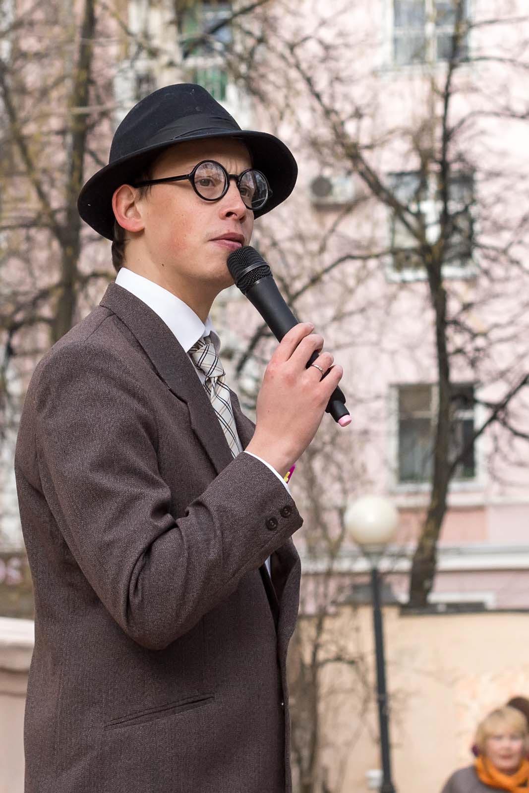 Фото №152051. Art16.ru Photo archive Ведущий вечера в очках с толстой оправой, костюме — «а-ля