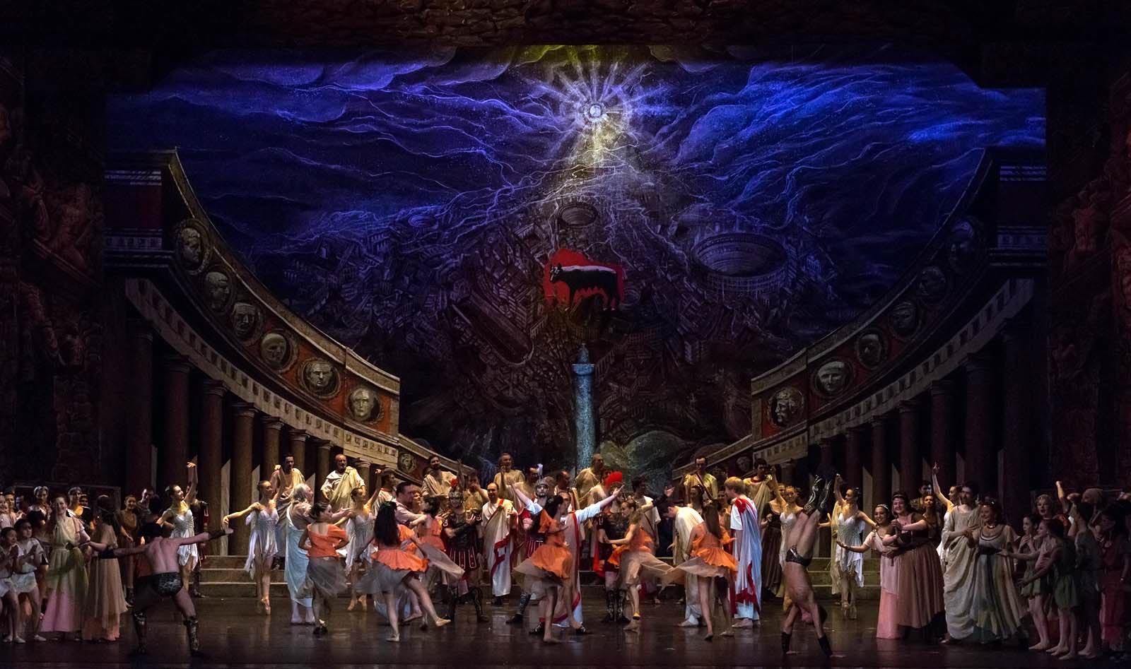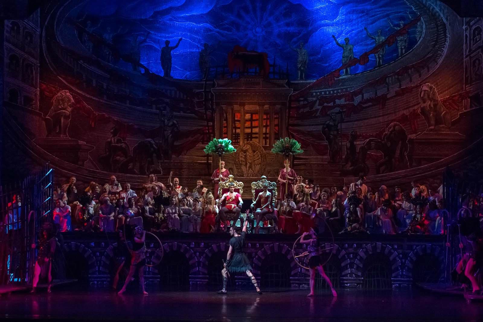 Фото №153835. Art16.ru Photo archiveСпартак — Михаил Тимаев;Красс — Еурлан Канетов, Ливия — Кристина Андреева, Клавдия — Александра Елагина, Мать-волчица — Алина Штейнберг, Батиста — Глеб Кораблев.