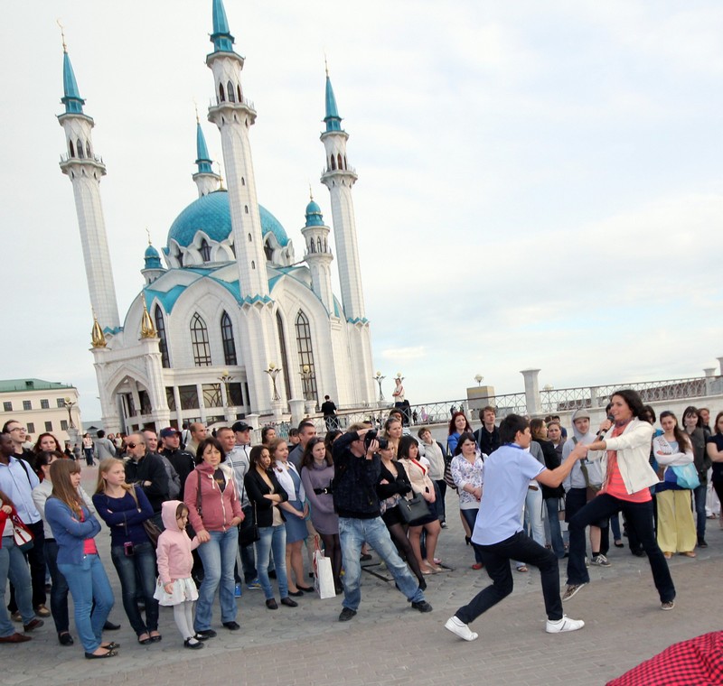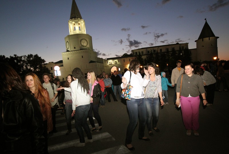 Фото №154514. Art16.ru Photo archiveВдохновлённые и счастливые, мы оказались на свежем воздухе с непреодолимым желанием танцевать. Это желание, как по мановению волшебной палочки, моментально осуществилось на площадке «Зиланткона» в Казанском Кремле. Там все желающие могли принять участие в